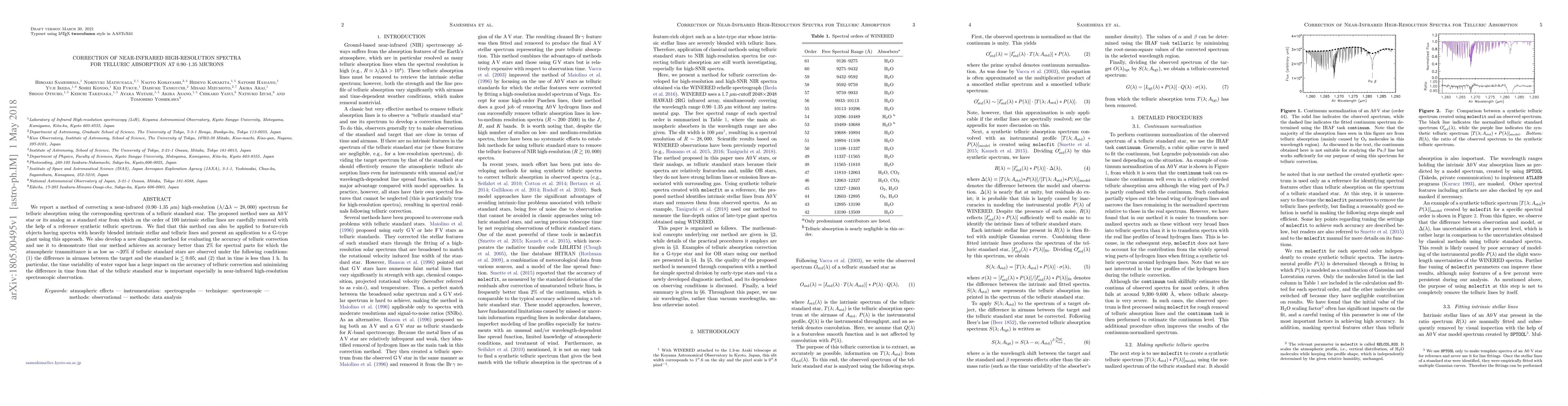 This paper presents a method to correct near-infrared high-resolution spectra for telluric absorption using a telluric standard star, achieving accuracy better than 2% under specific atmospheric conditions. The method effectively handles blended intrinsic and telluric lines, demonstrated through application to a G-type giant.