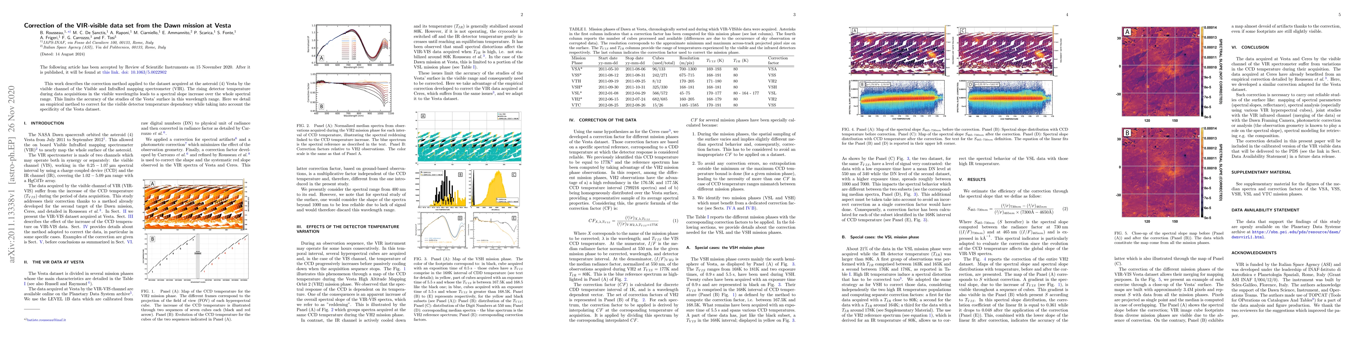 This work describes the correction method applied to the dataset acquired at the asteroid (4) Vesta by the visible channel of the visible and infrared mapping spectrometer. The rising detector temperature during data acquisitions in the visible wavelengths leads to a spectral slope increase over the whole spectral range. This limits the accuracy of the studies of the Vesta surface in this wavelength range. Here, we detail an empirical method to correct for the visible detector temperature dependency while taking into account the specificity of the Vesta dataset.