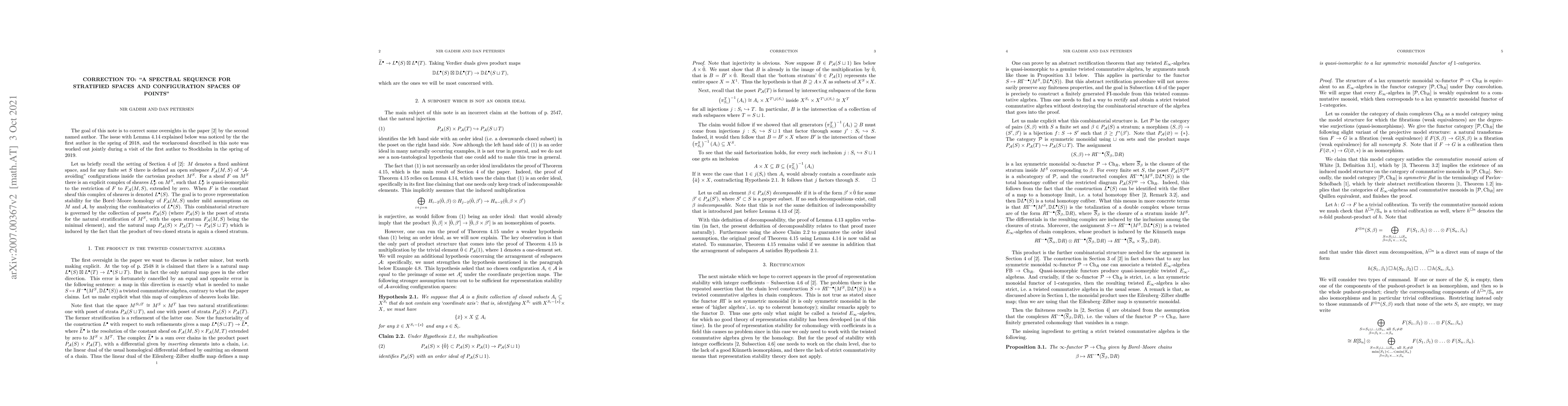 This paper corrects oversights in a previous study, specifically adding an additional hypothesis to Theorem 4.15 to ensure the accuracy of results concerning spectral sequences for stratified and configuration spaces.
