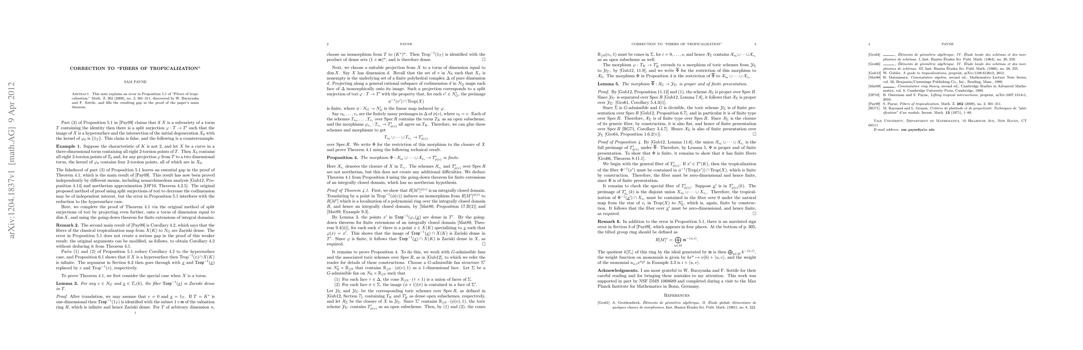 This note corrects an error in Proposition 5.1 of "Fibers of tropicalization" and provides a complete proof for the main theorem, addressing a gap identified by W. Buczynska and F. Sottile.