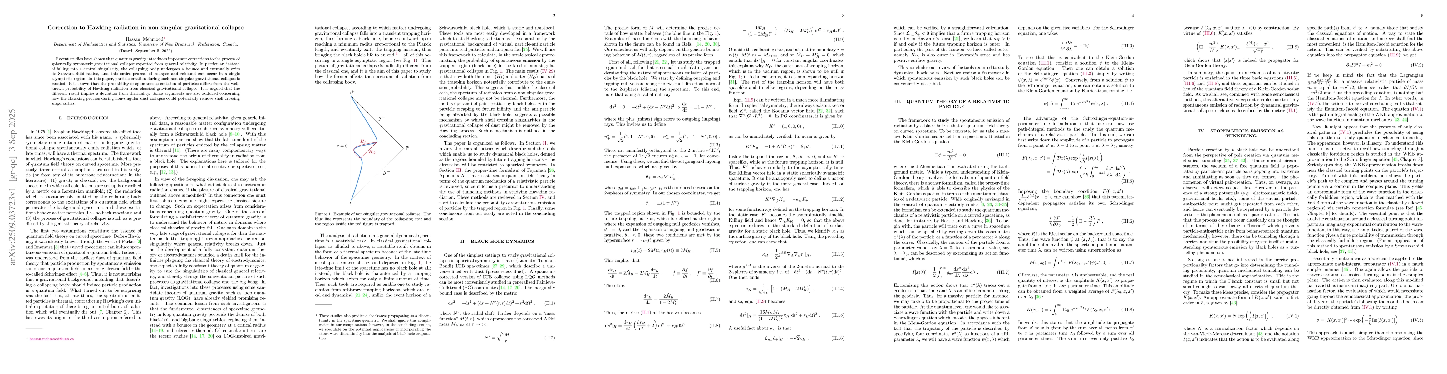 Recent studies have shown that quantum gravity introduces important corrections to the process of spherically symmetric gravitational collapse expected from general relativity. In particular, instead of falling into a central singularity, the collapsing body undergoes a bounce and eventually exits its Schwarzschild radius, and this entire process of collapse and rebound can occur in a single asymptotic region. In this paper, particle creation during such non-singular gravitational collapse is studied. It is shown that the probability of spontaneous emission of particles differs from the well-known probability of Hawking radiation from classical gravitational collapse. It is argued that the different result implies a deviation from thermality. Some arguments are also adduced concerning how the Hawking process during non-singular dust collapse could potentially remove shell crossing singularities.