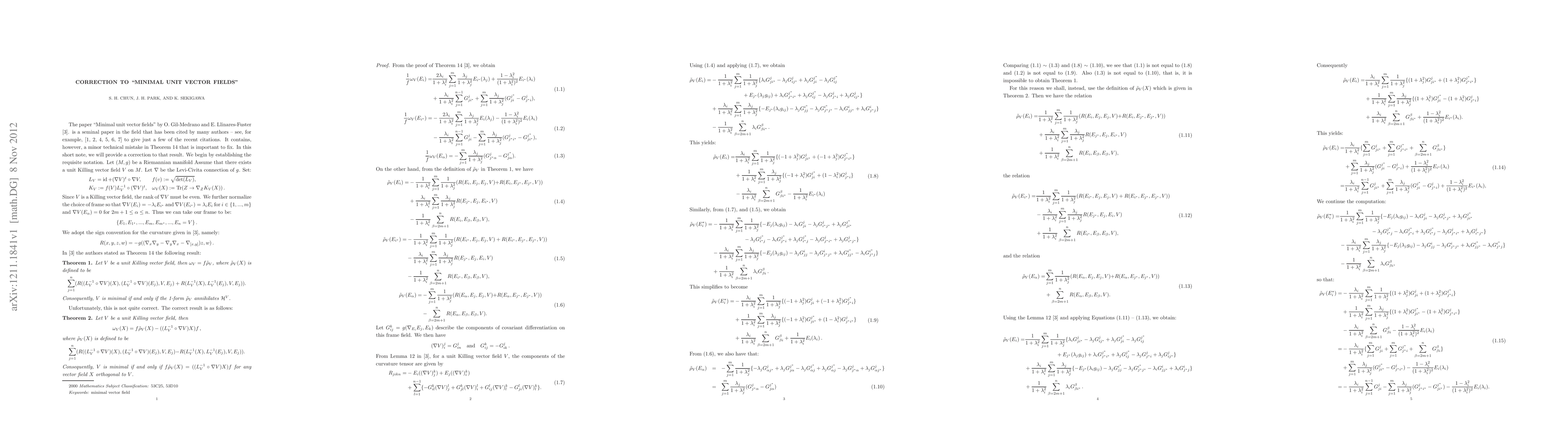 This paper corrects a minor technical error in Theorem 14 of the seminal work "Minimal unit vector fields" by O. Gil-Medrano and E. Llinares-Fuster, ensuring the accuracy of the foundational results in the field.