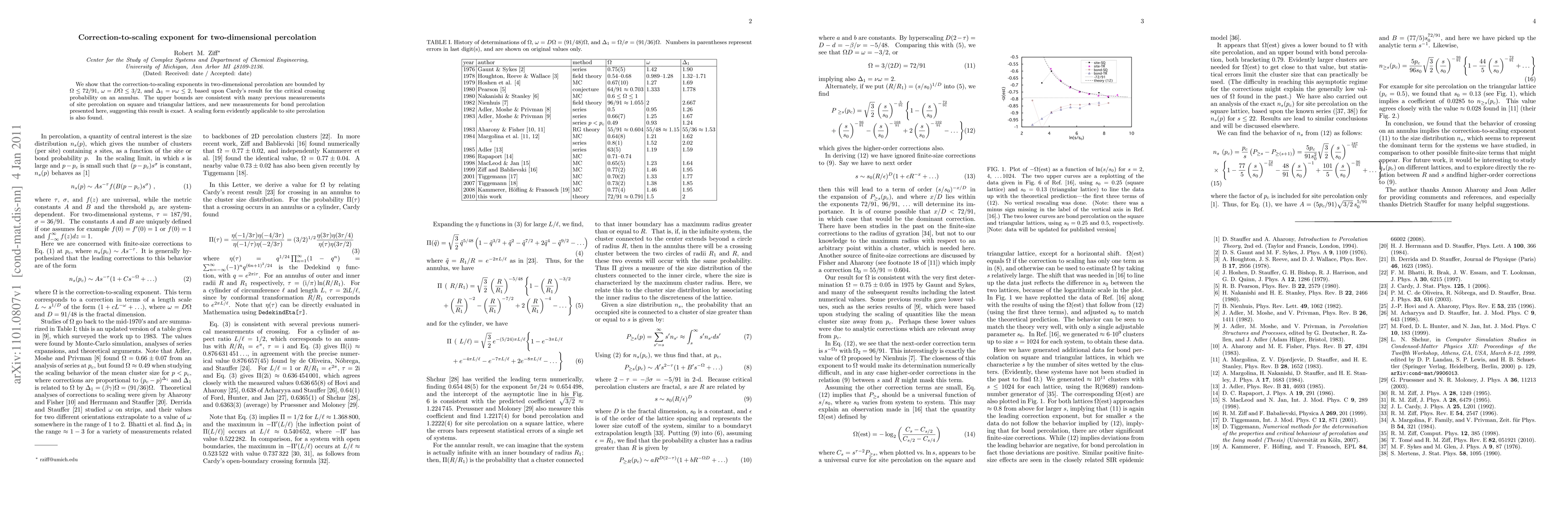 This paper establishes upper bounds for the correction-to-scaling exponents in two-dimensional percolation, confirming previous measurements and suggesting exactness. The findings align with Cardy's critical crossing probability and provide a scaling form for site percolation.