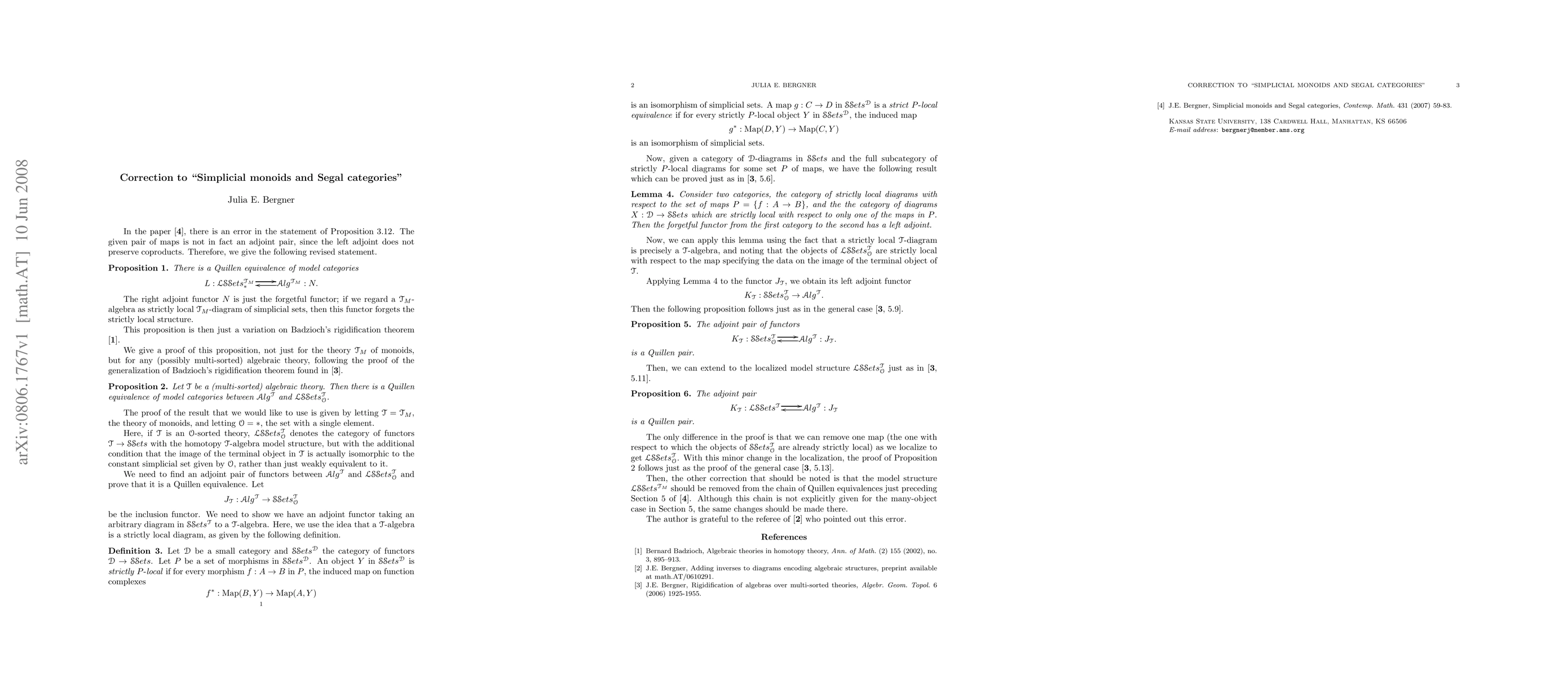 Summary: This note corrects a minor error in the previously published paper "Simplicial monoids and Segal categories," ensuring the accuracy and integrity of the original research findings.