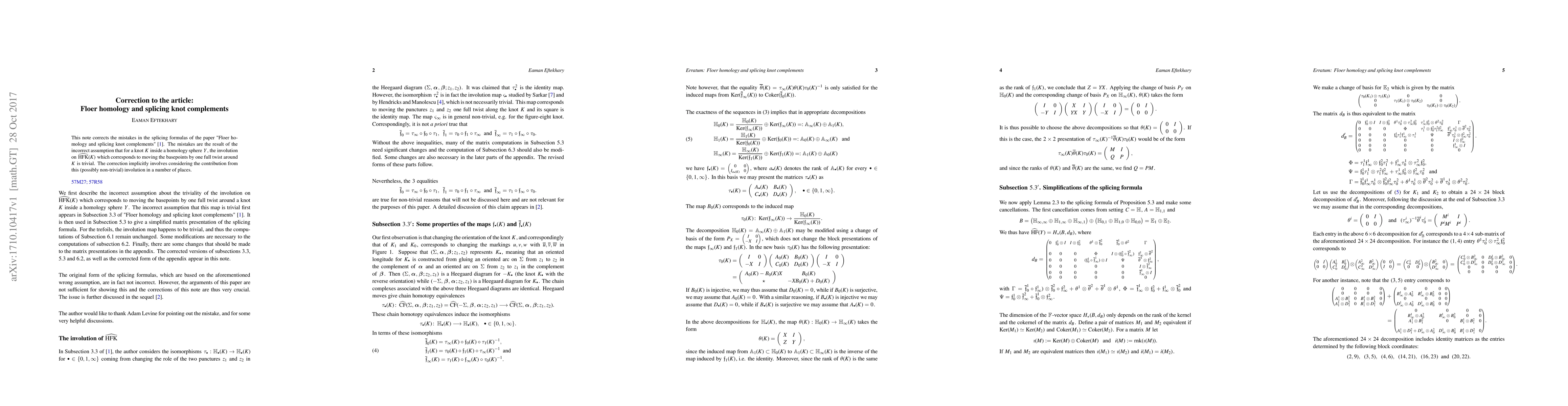 This paper corrects errors in the original splicing formulas of "Floer homology and splicing knot complements" by addressing the incorrect assumption about the triviality of the involution in knot Floer homology due to a full twist around the knot, thus considering its potential non-trivial contribution.