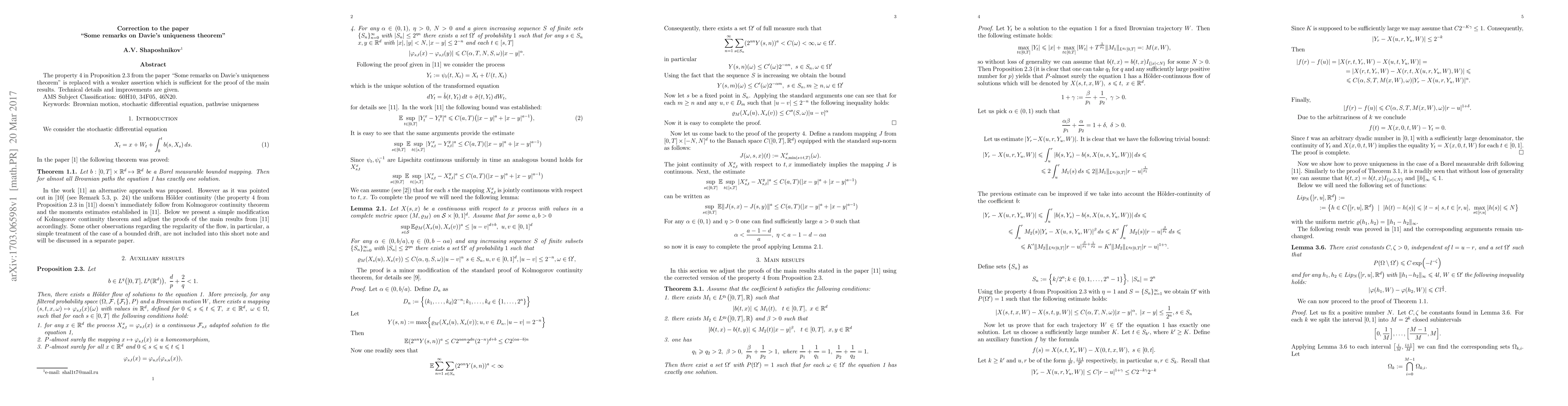 This correction ensures the validity and completeness of the original proof, enhancing the understanding and applicability of Davie's uniqueness theorem in stochastic differential equations.