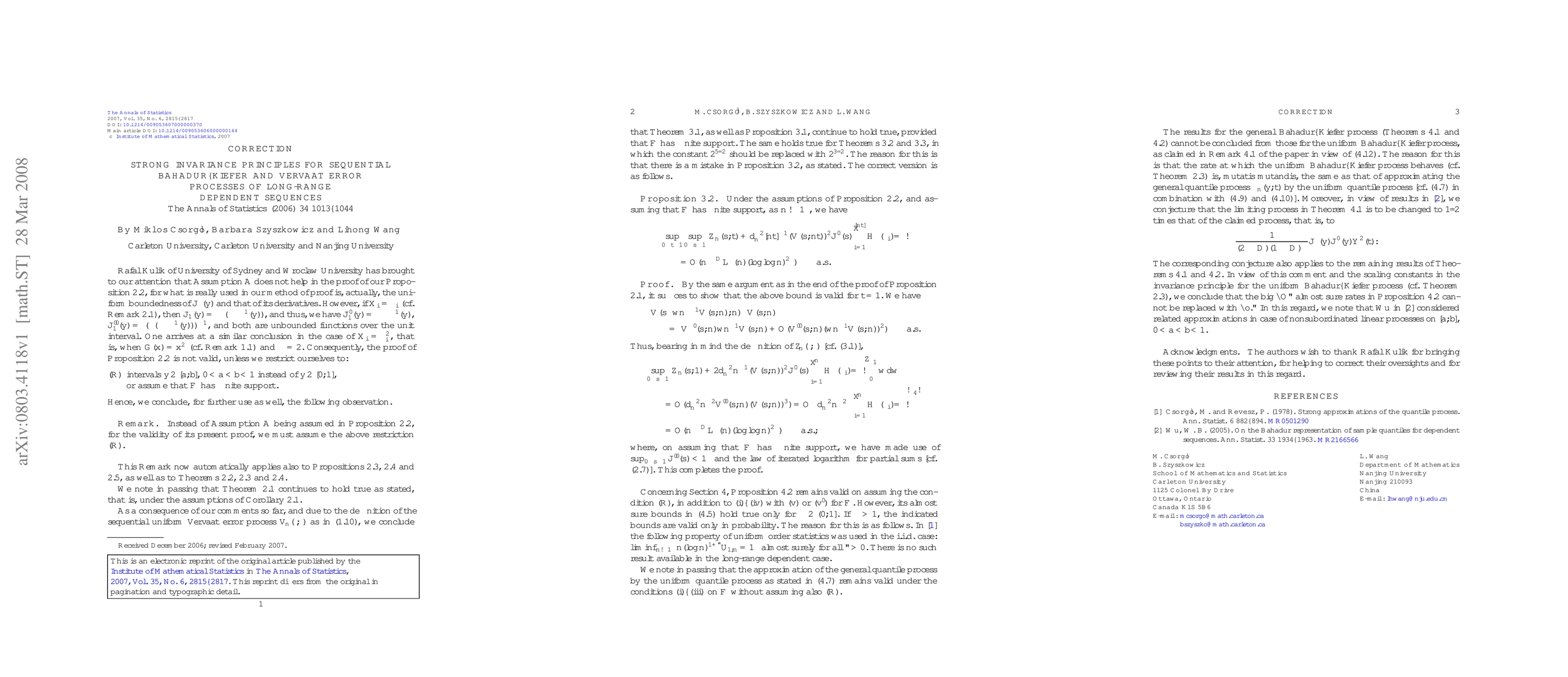 Correction to The Annals of Statistics (2006) 34, 1013--1044 [URL: http://projecteuclid.org/euclid.aos/1151418250]