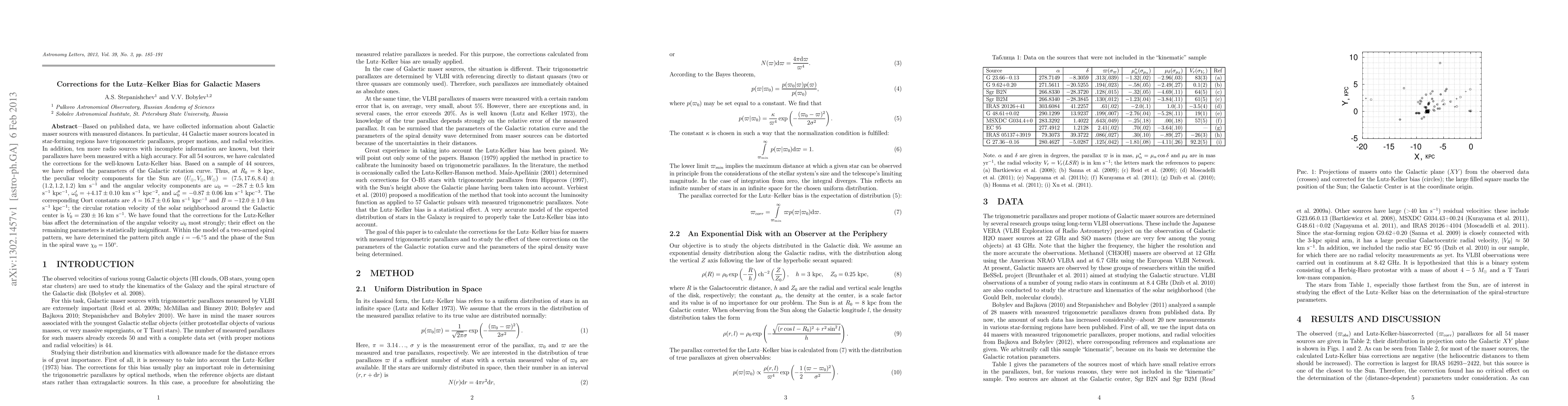 Researchers have corrected for the Lutz-Kelker bias in Galactic maser sources to refine the parameters of the Galactic rotation curve, including the peculiar velocity components and Oort constants at the Sun's location.