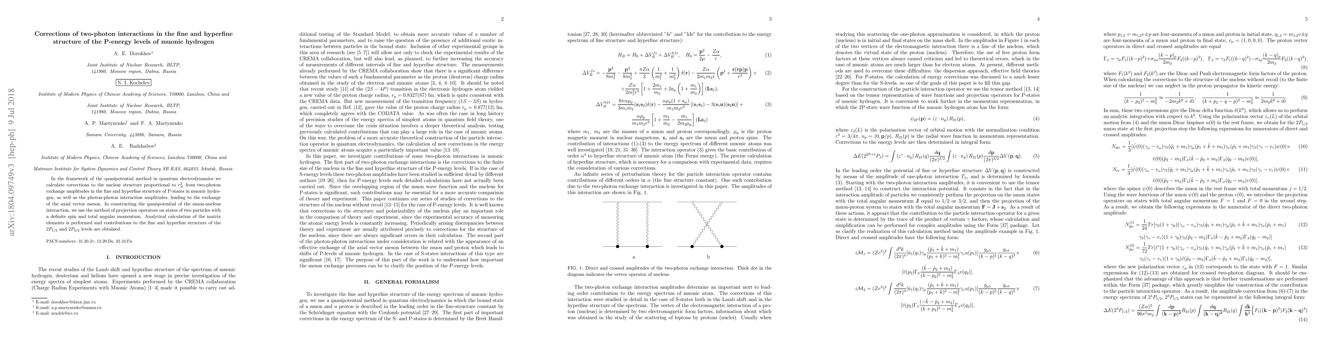 In the framework of the quasipotential method in quantum electrodynamics we calculate corrections to the nuclear structure proportional to $r_N^2$ from two-photon exchange amplitudes in the fine and hyperfine structure of P-states in muonic hydrogen, as well as the photon-photon interaction amplitudes, leading to the exchange of the axial vector meson. In constructing the quasipotential of the muon-nucleus interaction, we use the method of projection operators on states of two particles with a definite spin and total angular momentum. Analytical calculation of the matrix elements is performed and contributions to the fine and hyperfine structure of the $2P_{1/2}$ and $2P_{3/2}$ levels are obtained.
