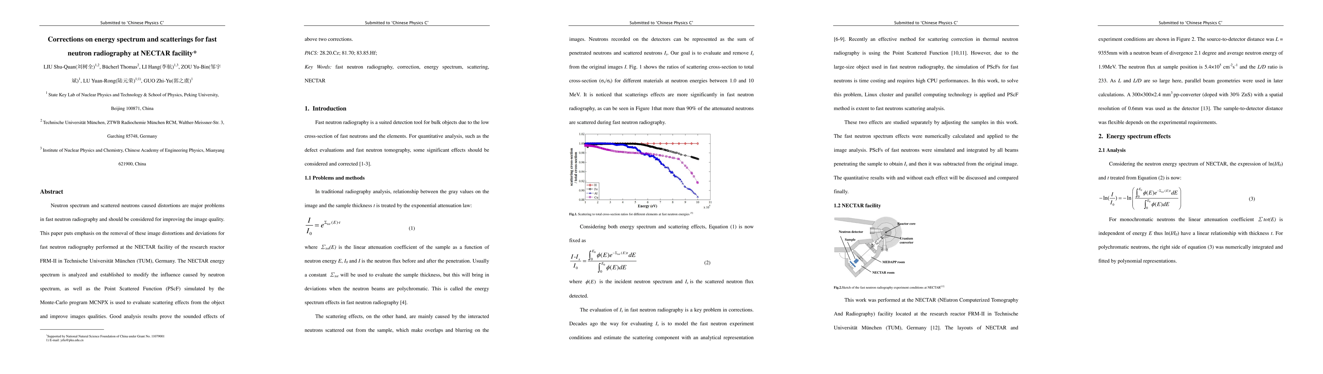 This paper analyzes the neutron spectrum and scattering effects at the NECTAR facility of the FRM-II research reactor, focusing on correcting distortions in fast neutron radiography. It employs Monte-Carlo simulations to improve image quality by addressing neutron spectrum and scattering influences.