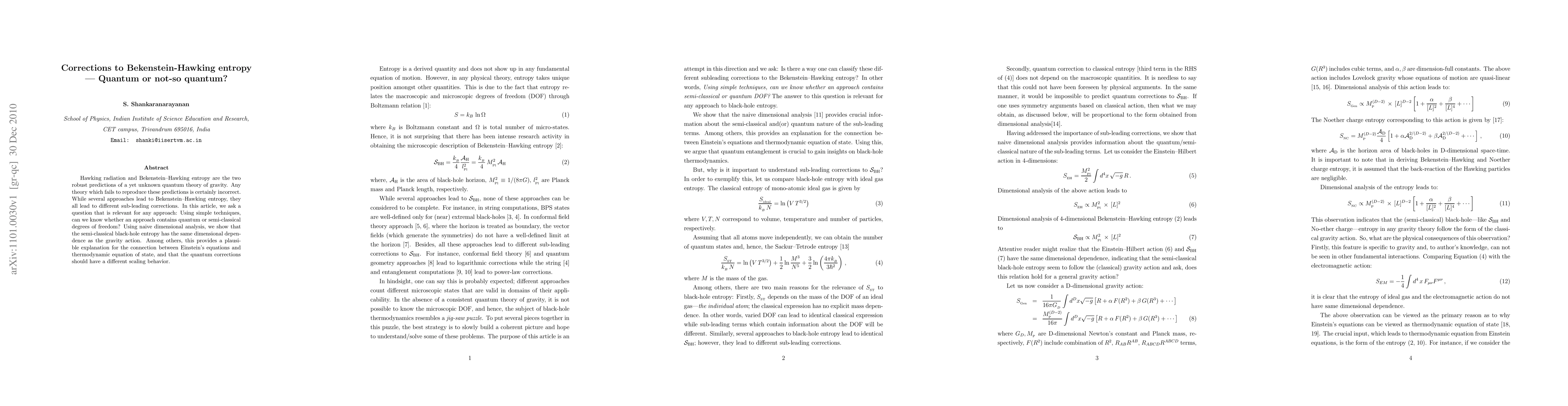 The paper presents a novel approach using naive dimensional analysis to classify approaches predicting corrections to Bekenstein-Hawking entropy, distinguishing semi-classical from truly quantum corrections.