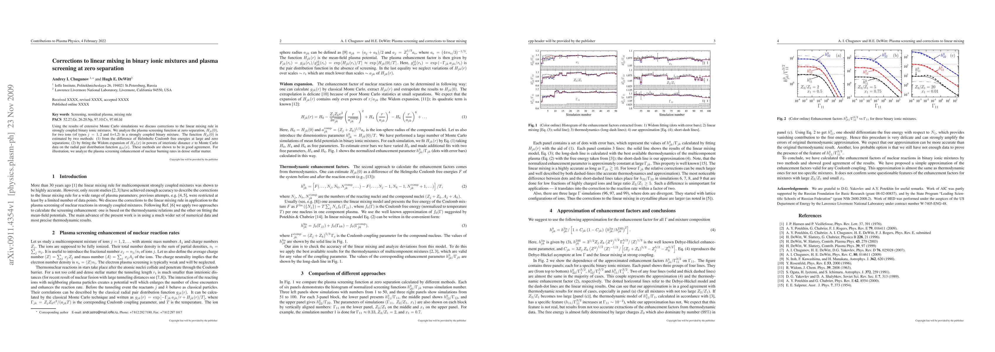 This paper discusses corrections to the linear mixing rule in binary ionic mixtures using Monte Carlo simulations, focusing on the plasma screening function at zero separation. Two methods for estimating this function are compared and shown to be in good agreement, with implications for nuclear burning rates in dense stellar matter.
