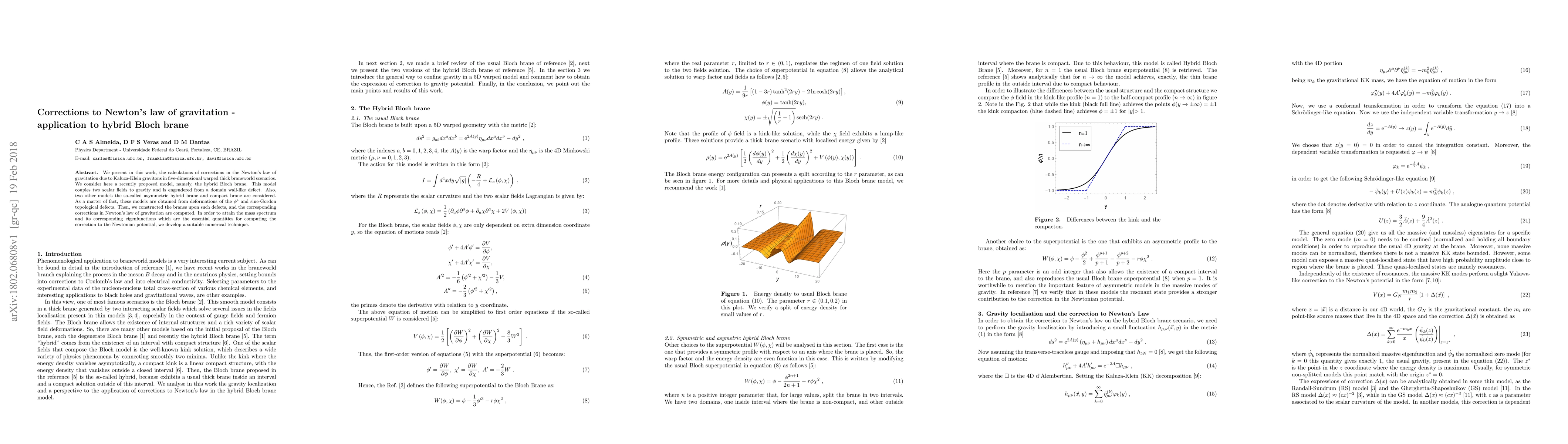We present in this work, the calculations of corrections in the Newton's law of gravitation due to Kaluza-Klein gravitons in five-dimensional warped thick braneworld scenarios. We consider here a recently proposed model, namely, the hybrid Bloch brane. This model couples two scalar fields to gravity and is engendered from a domain wall-like defect. Also, two other models the so-called asymmetric hybrid brane and compact brane are considered. As a matter of fact, these models are obtained from deformations of the phi4 and sine-Gordon topological defects. Then, we constructed the branes upon such defects, and the corresponding corrections in Newton's law of gravitation are computed. In order to attain the mass spectrum and its corresponding eigenfunctions which are the essential quantities for computing the correction to the Newtonian potential, we develop a suitable numerical technique.