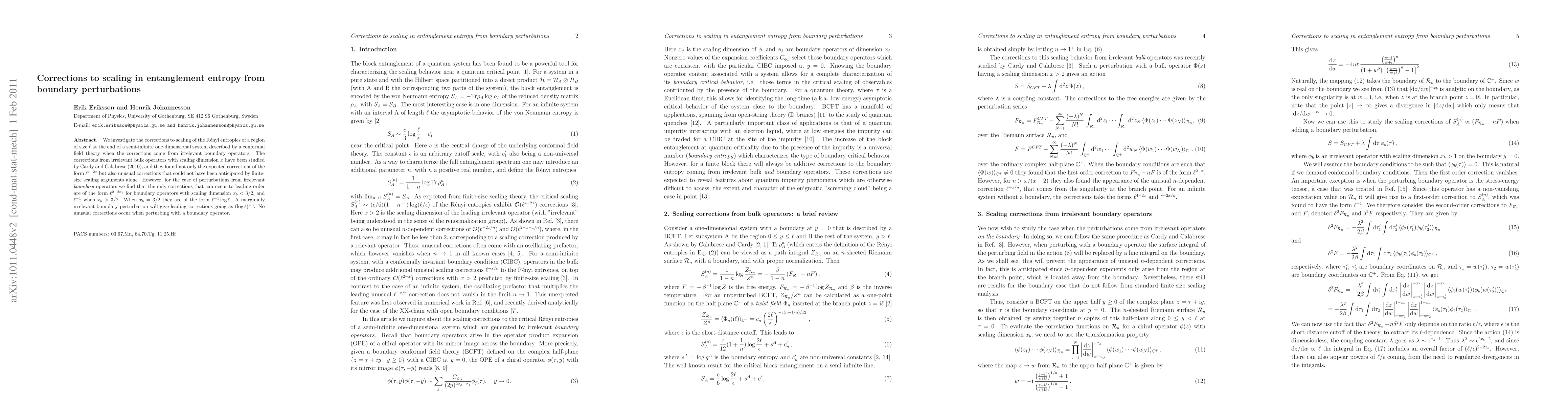 This paper examines the scaling corrections to Renyi entropies in a one-dimensional conformal field theory due to irrelevant boundary perturbations. Unlike bulk perturbations, boundary perturbations yield corrections of the form l^(2-2x_b) for x_b < 3/2 and l^(-1) for x_b > 3/2, with no unexpected scaling behaviors.