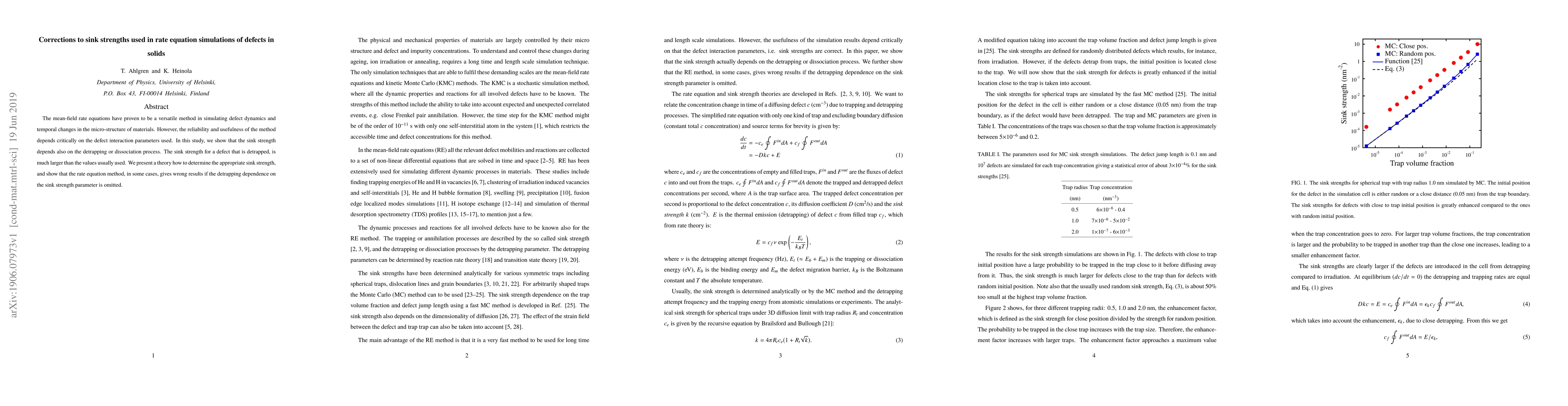 The mean-field rate equations have proven to be a versatile method in simulating defect dynamics and temporal changes in the micro-structure of materials. However, the reliability and usefulness of the method depends critically on the defect interaction parameters used. In this study, we show that the sink strength depends also on the detrapping or dissociation process. The sink strength for a defect that is detrapped, is much larger than the values usually used. We present a theory how to determine the appropriate sink strength, and show that the rate equation method, in some cases, gives wrong results if the detrapping dependence on the sink strength parameter is omitted.