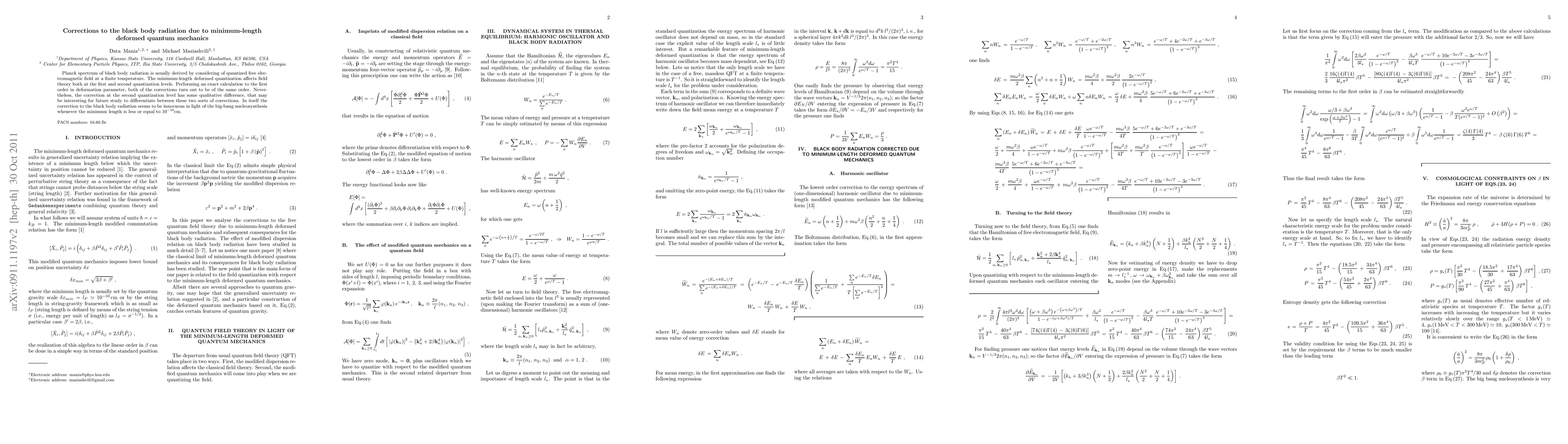 This paper investigates corrections to the Planck spectrum of black body radiation due to minimum-length deformed quantum mechanics. It finds that both first and second quantization levels yield corrections of similar magnitude, with the second level showing qualitative differences that could be significant for future research. The corrections appear negligible for minimum lengths up to $10^{-19}$ cm in the context of big-bang nucleosynthesis.