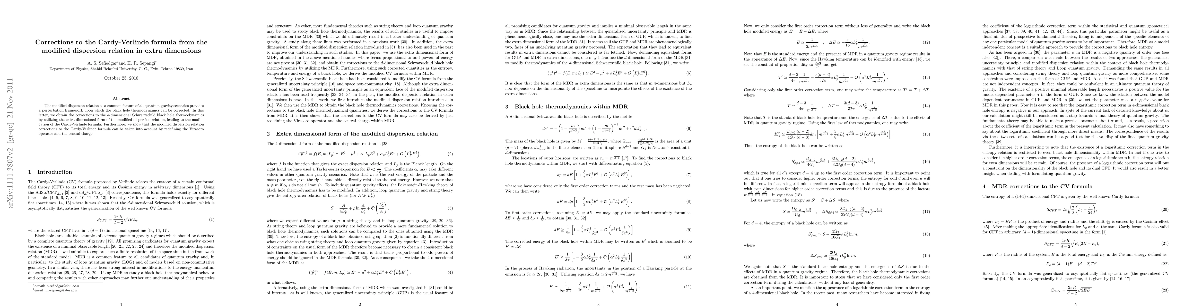 This paper corrects the Cardy-Verlinde formula for $d$-dimensional Schwarzschild black holes using the modified dispersion relation from quantum gravity in extra dimensions, and demonstrates that these corrections can be incorporated by redefining the Virasoro operator and the central charge.