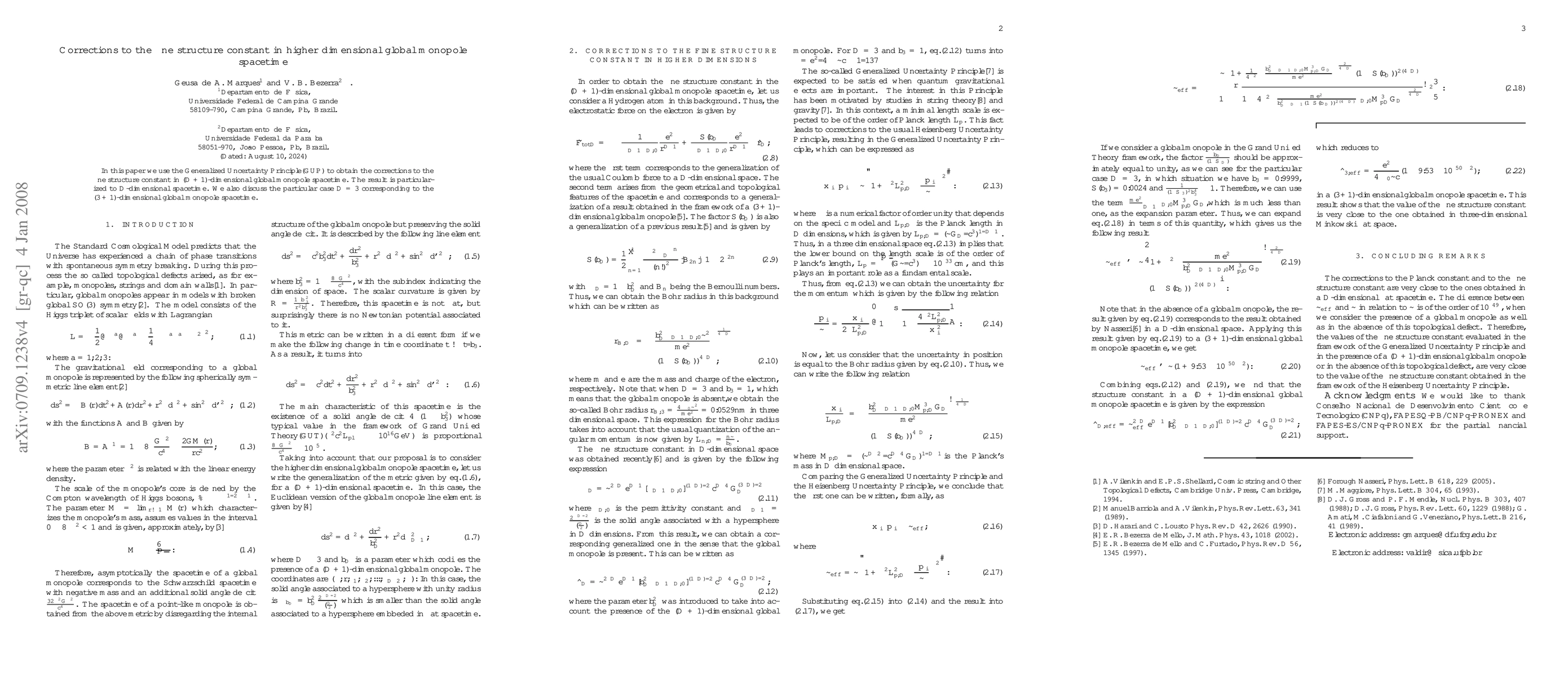 In this paper we use the Generalized Uncertainty Principle in order to obtain the corrections to the fine structure constant in (D+1)-dimensional global monopole spacetime. The result is particularized to D-dimensional spacetime. We also discuss the particular case D=3 corresponding to the (3+1)-dimensional global monopole spacetime.