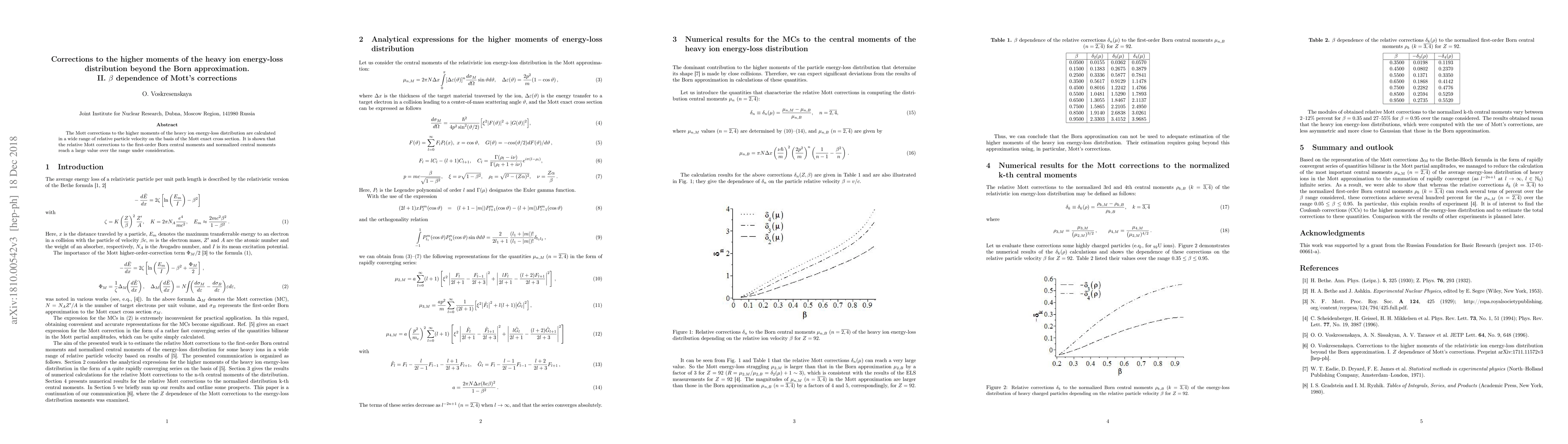The Mott corrections to the higher moments of the heavy ion energy-loss distribution are calculated in a wide range of relative particle velocity on the basis of the Mott exact cross section. It is shown that the relative Mott corrections to the first-order Born central moments and normalized central moments reach a large value over the range under consideration.