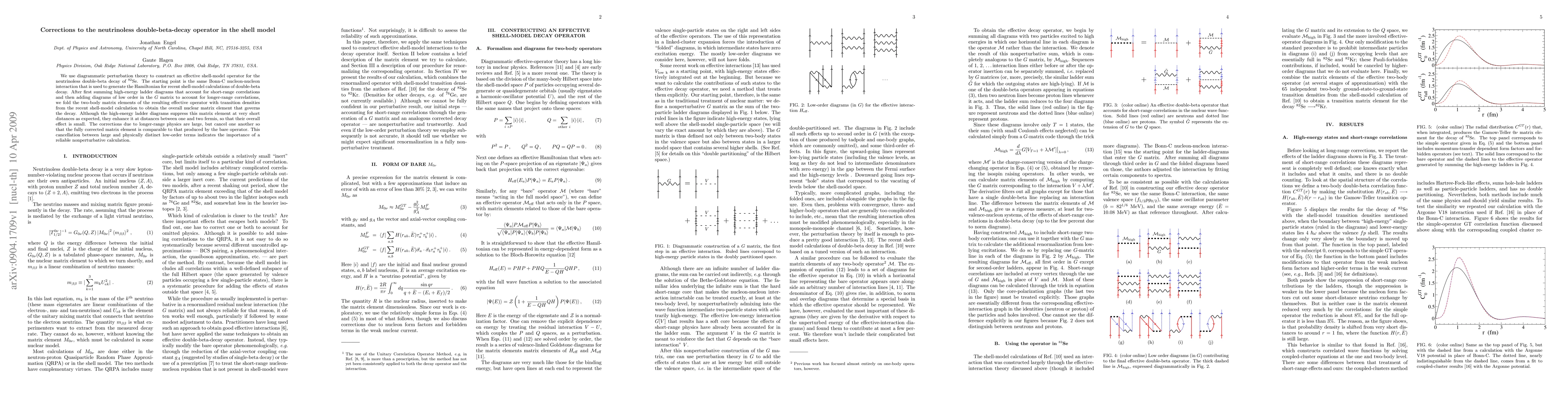 We use diagrammatic perturbation theory to construct an effective shell-model operator for the neutrinoless double-beta decay of 82Se. The starting point is the same Bonn-C nucleon-nucleon interaction that is used to generate the Hamiltonian for recent shell-model calculations of double-beta decay. After first summing high-energy ladder diagrams that account for short-range correlations and then adding diagrams of low order in the G matrix to account for longer-range correlations, we fold the two-body matrix elements of the resulting effective operator with transition densities from the recent shell-model calculation to obtain the overall nuclear matrix element that governs the decay. Although the high-energy ladder diagrams suppress this matrix element at very short distances as expected, they enhance it at distances between one and two fermis, so that their overall effect is small. The corrections due to longer-range physics are large, but cancel one another so that the fully corrected matrix element is comparable to that produced by the bare operator. This cancellation between large and physically distinct low-order terms indicates the importance of a reliable nonperturbative calculation.