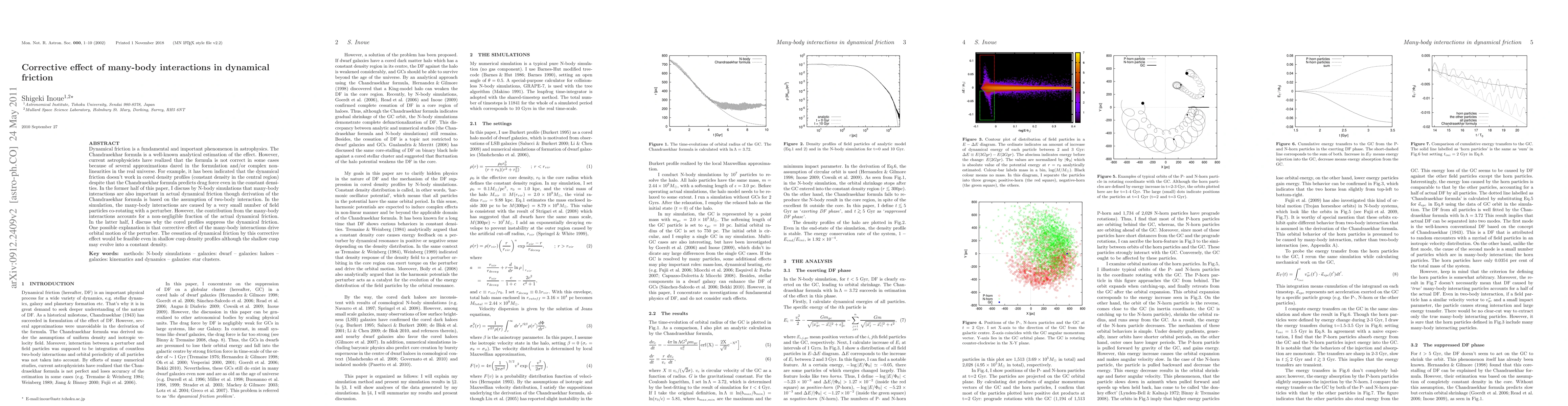 Dynamical friction is a fundamental and important phenomenon in astrophysics. The Chandrasekhar formula is a well-known analytical estimation of the effect. However, current astrophysicists have realized that the formula is not correct in some cases because of several approximations dared in the formulation and/or complex non-linearities in the real universe. For example, it has been indicated that the dynamical friction doesn't work in cored density profiles (constant density in the central region) despite that the Chandrasekhar formula predicts drag force even in the constant densities. In the former half of this paper, I discuss by N-body simulations that many-body interactions are also important in actual dynamical friction though derivation of the Chandrasekhar formula is based on the assumption of two-body interaction. In the simulation, the many-body interactions are caused by a very small number of field particles co-rotating with a perturber. However, the contribution from the many-body interactions accounts for a non-negligible fraction of the actual dynamical friction. In the latter half, I discuss why the cored profiles suppress the dynamical friction. One possible explanation is that corrective effect of the many-body interactions drive orbital motion of the perturber. The cessation of dynamical friction by this corrective effect would be feasible even in shallow cusp density profiles although the shallow cusp may evolve into a constant density.