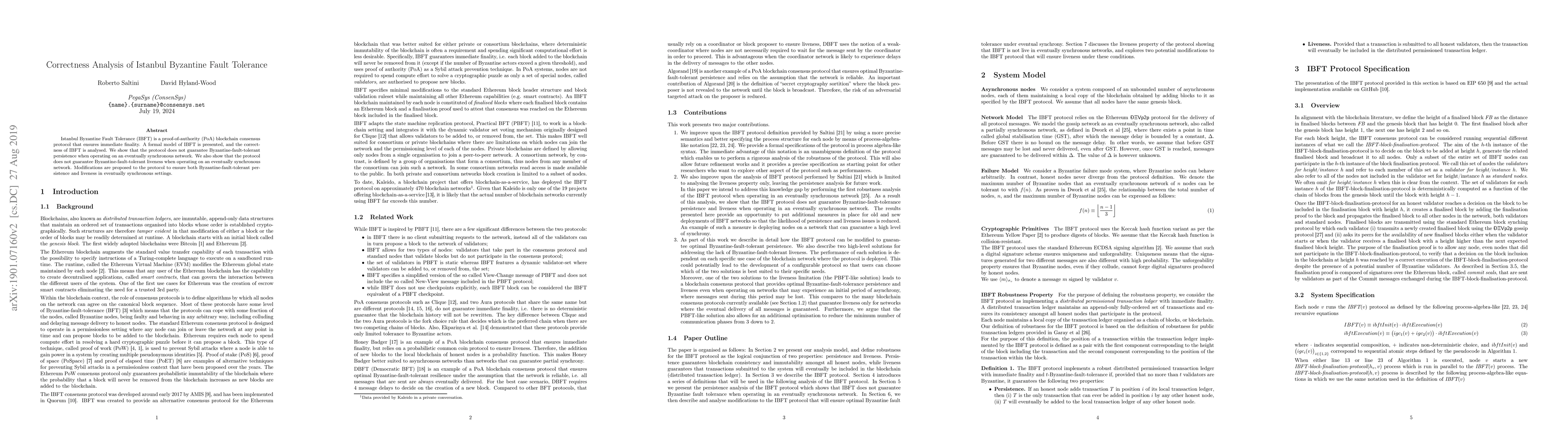 In this paper we analyse the correctness of Istanbul BFT (IBFT), which is a Byzantine-fault-tolerant (BFT) proof-of-authority (PoA) blockchain consensus protocol that ensures immediate finality. We show that the IBFT protocol does not guarantee Byzantine-fault-tolerant consistency and liveness when operating in an eventually synchronous network, and we propose modifications to the protocol to ensure both Byzantine-fault-tolerant consistency and liveness in eventually synchronous settings.