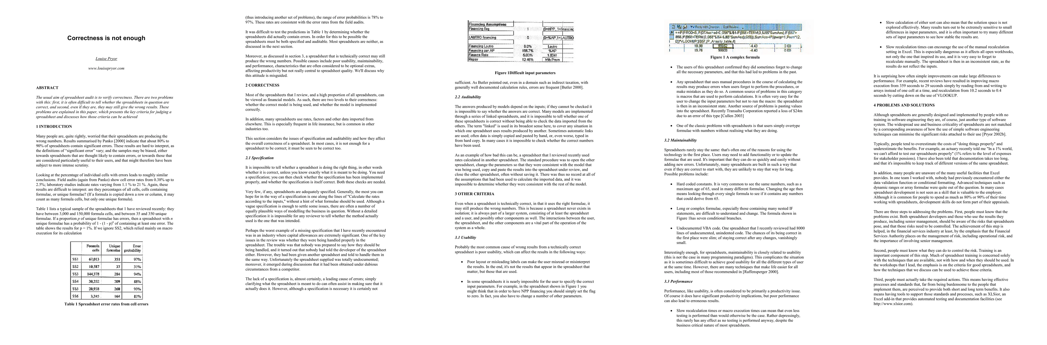 The usual aim of spreadsheet audit is to verify correctness. There are two problems with this: first, it is often difficult to tell whether the spreadsheets in question are correct, and second, even if they are, they may still give the wrong results. These problems are explained in this paper, which presents the key criteria for judging a spreadsheet and discusses how those criteria can be achieved