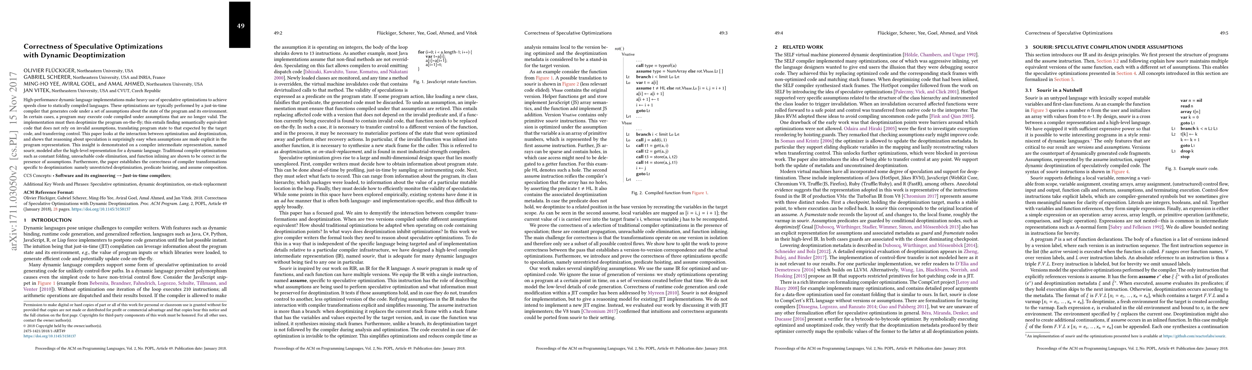 A research paper investigates speculative optimizations in dynamic language implementations and demonstrates their correctness with explicit assumptions made in program representation. Traditional compiler optimizations and deoptimization transformations are shown to be correct under these conditions.