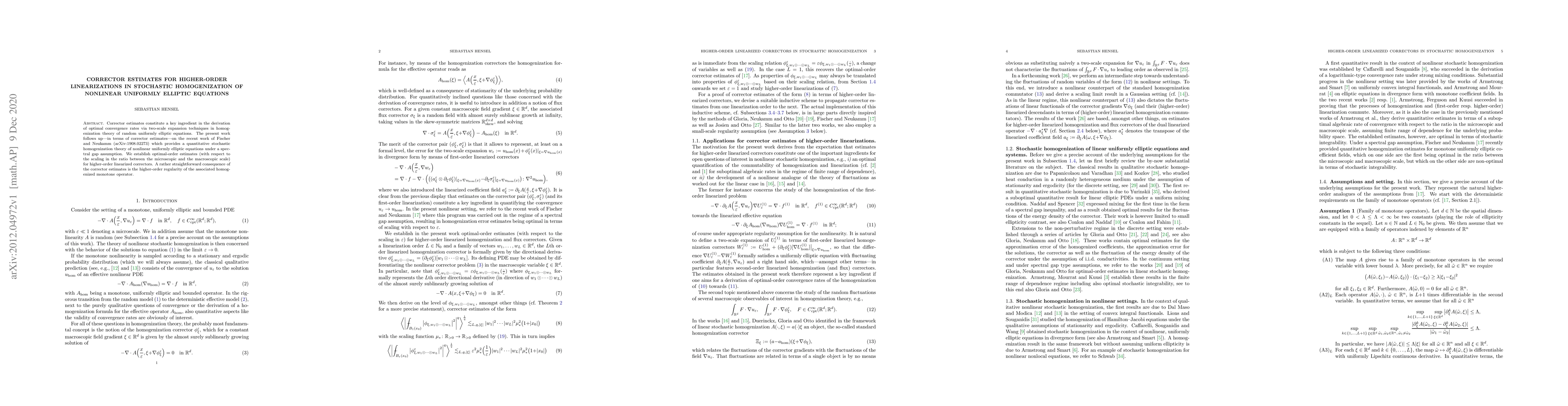 This paper derives optimal-order corrector estimates for higher-order linearized correctors in stochastic homogenization of nonlinear uniformly elliptic equations, extending previous work by Fischer and Neukamm. These estimates enhance the understanding of the convergence rates and higher-order regularity of homogenized monotone operators.