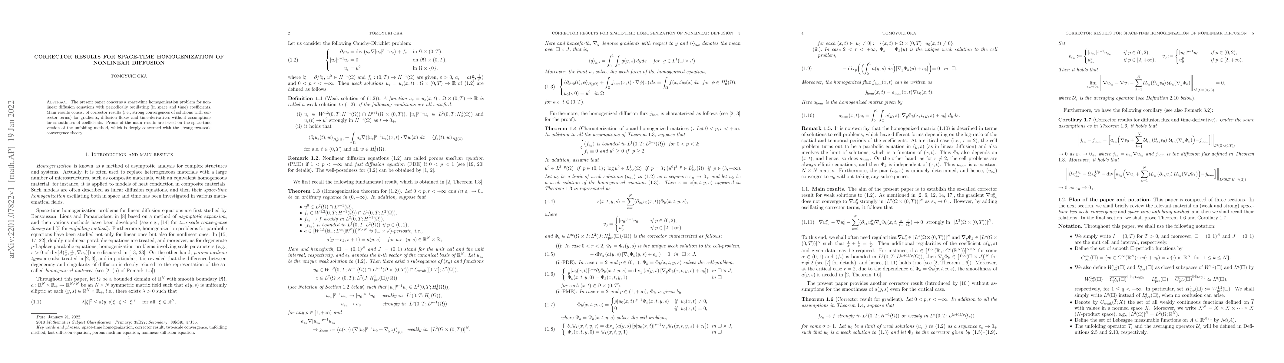 This paper investigates the space-time homogenization of nonlinear diffusion equations with oscillating coefficients, presenting strong convergence results for gradients, diffusion fluxes, and time-derivatives, without requiring coefficient smoothness. The proofs leverage the space-time unfolding method and strong two-scale convergence theory.