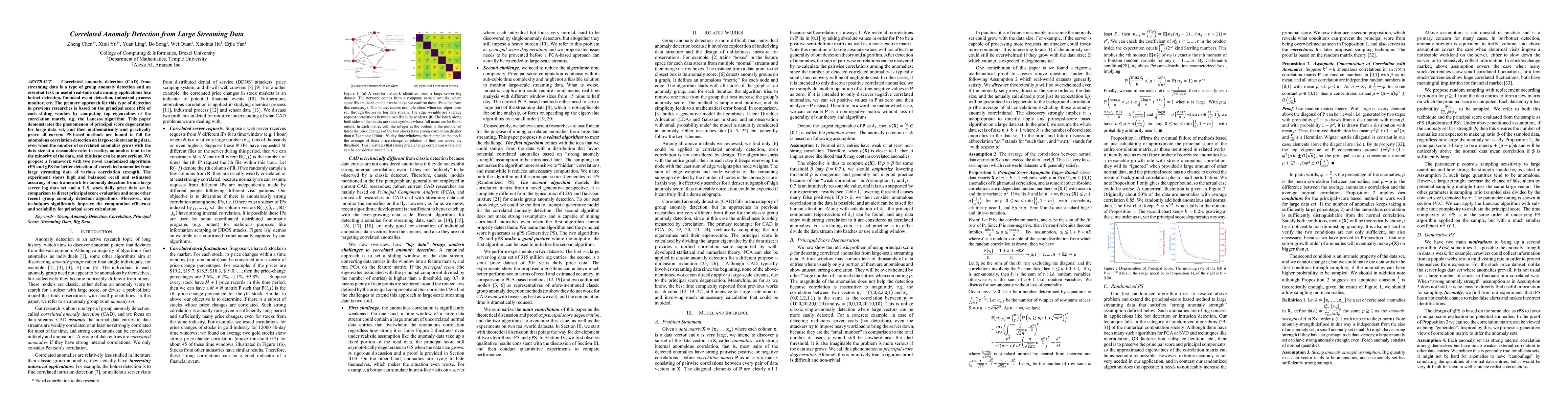 This paper addresses the limitations of principal score-based methods for correlated anomaly detection in large streaming data, proposing two novel randomized algorithms, rPS and gPS, to enhance detection efficiency and accuracy. Experimental results demonstrate improved performance and scalability compared to existing methods on server log and stock price datasets.