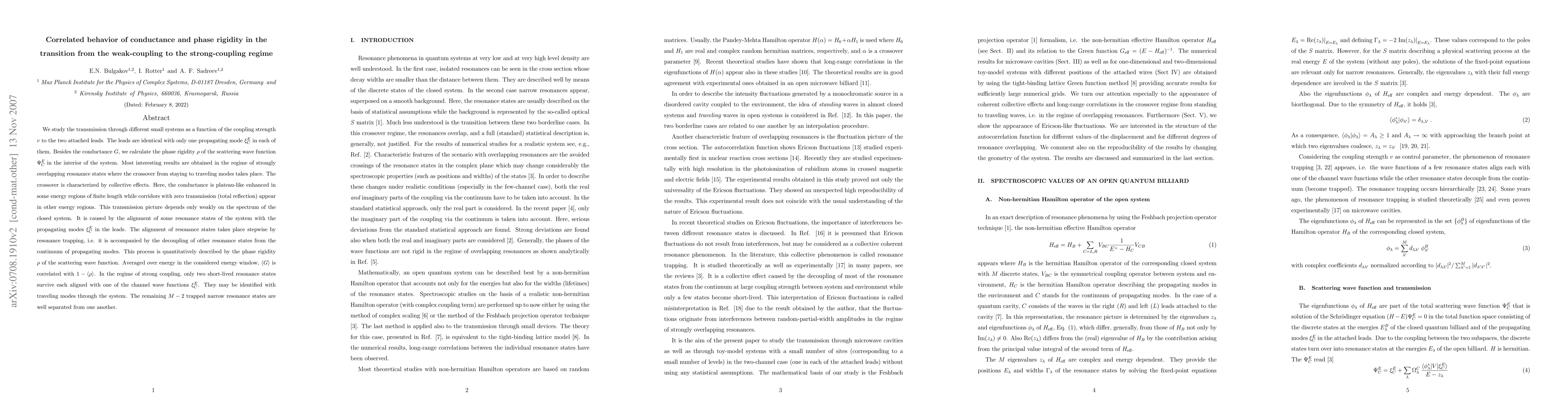 conductance $G$, we calculate the phase rigidity $\rho$ of the scattering wave