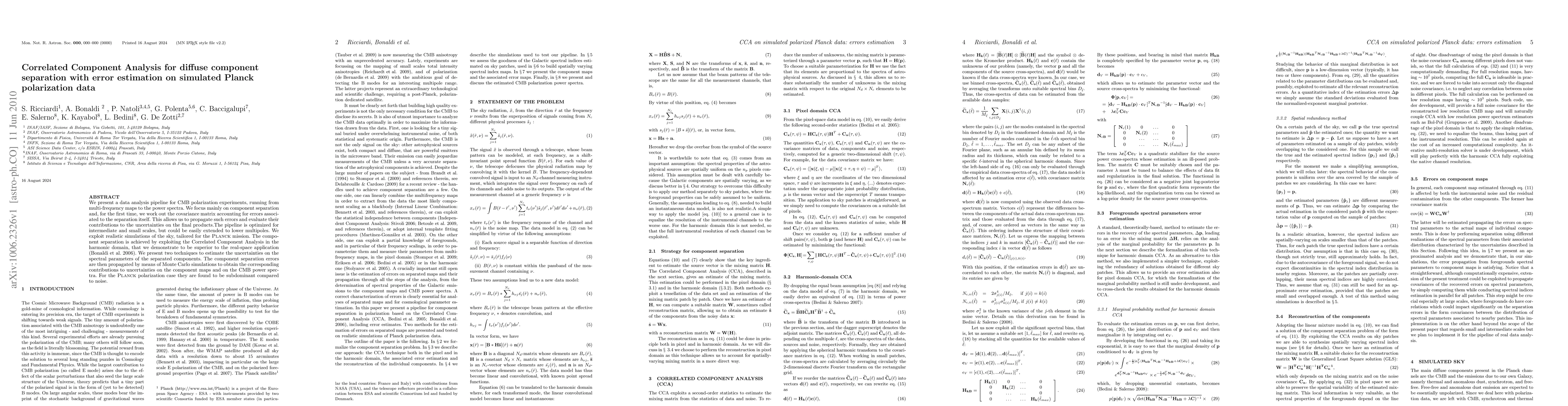 We present a data analysis pipeline for CMB polarization experiments, running from multi-frequency maps to the power spectra. We focus mainly on component separation and, for the first time, we work out the covariance matrix accounting for errors associated to the separation itself. This allows us to propagate such errors and evaluate their contributions to the uncertainties on the final products.The pipeline is optimized for intermediate and small scales, but could be easily extended to lower multipoles. We exploit realistic simulations of the sky, tailored for the Planck mission. The component separation is achieved by exploiting the Correlated Component Analysis in the harmonic domain, that we demonstrate to be superior to the real-space application (Bonaldi et al. 2006). We present two techniques to estimate the uncertainties on the spectral parameters of the separated components. The component separation errors are then propagated by means of Monte Carlo simulations to obtain the corresponding contributions to uncertainties on the component maps and on the CMB power spectra. For the Planck polarization case they are found to be subdominant compared to noise.