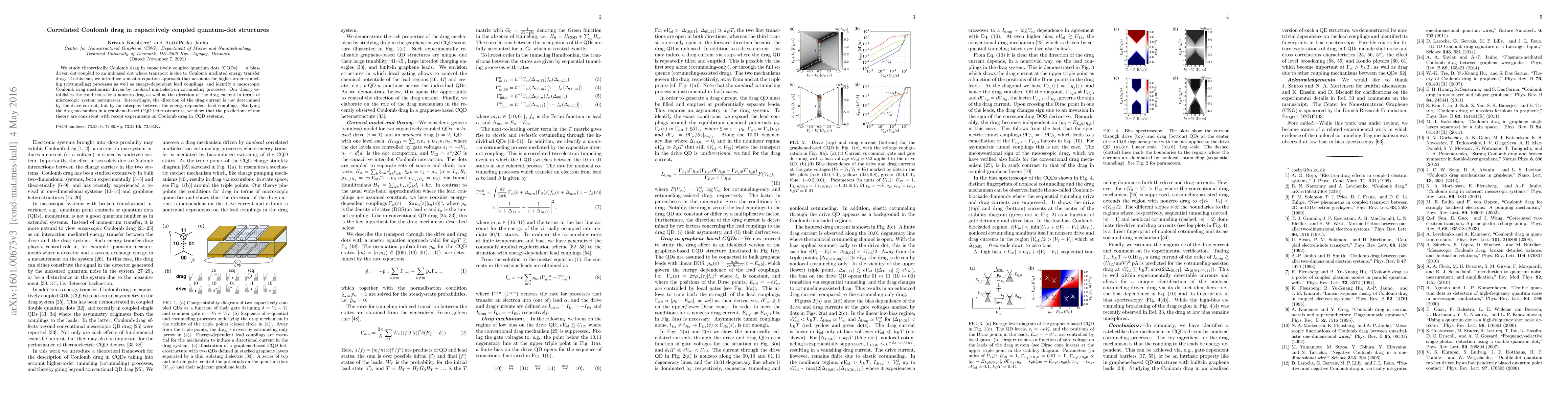 This paper theoretically investigates Coulomb drag in capacitively coupled quantum dots, revealing a mesoscopic drag mechanism driven by nonlocal multi-electron cotunneling processes. The study identifies conditions for a nonzero drag current, determined by an interplay between energy-dependent lead couplings rather than the drive current direction.