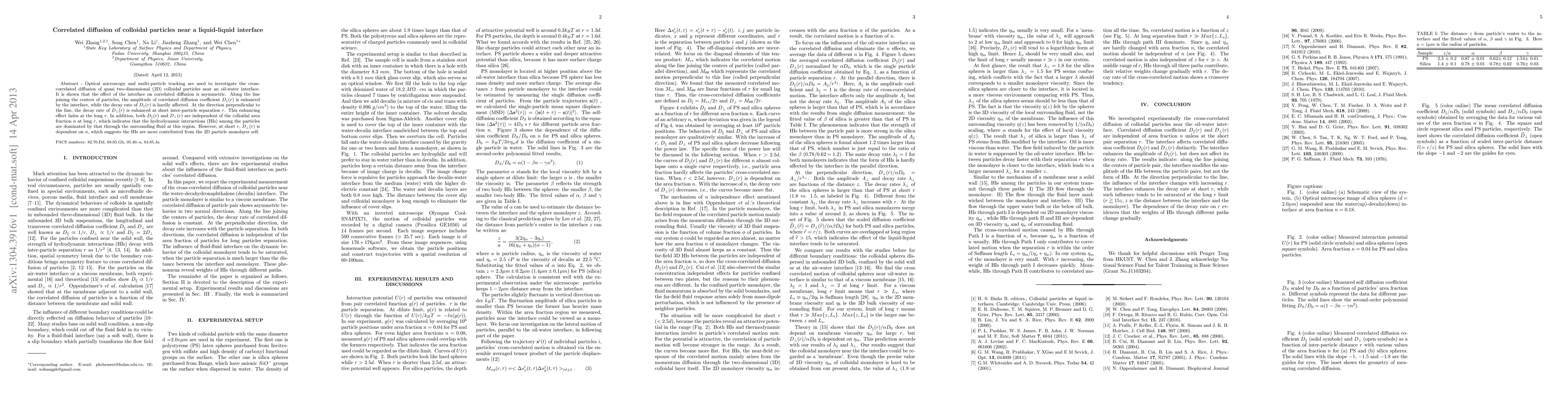 This study uses optical microscopy and multi-particle tracking to examine the correlated diffusion of colloidal particles near an oil-water interface, revealing asymmetric effects: enhanced correlated diffusion along the line joining particle centers and enhanced decay rate perpendicularly at short separations, which diminishes at longer separations.