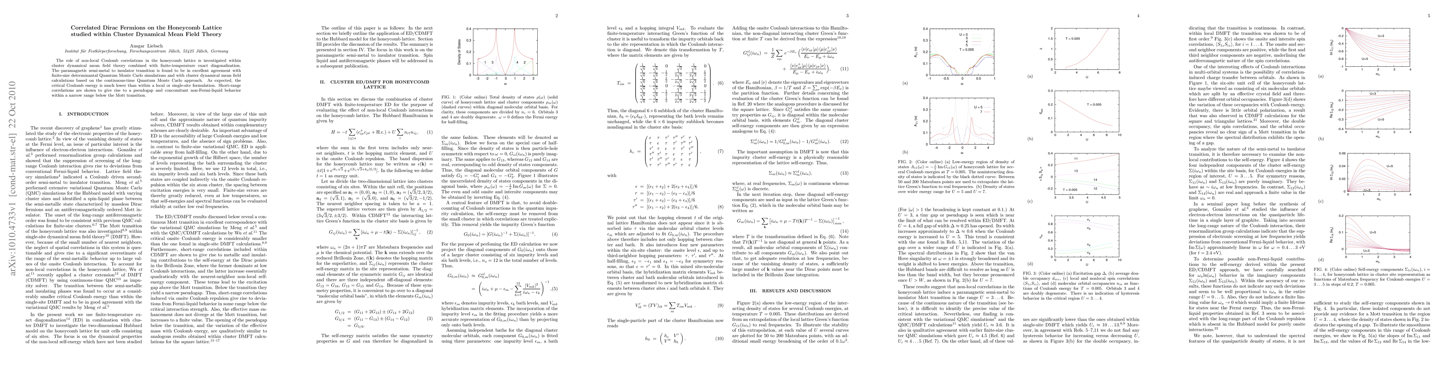 This study investigates non-local Coulomb correlations in honeycomb lattices using cluster dynamical mean field theory, revealing a paramagnetic semi-metal to insulator transition with lower critical Coulomb energy than local formulations. The findings align with Quantum Monte Carlo simulations and show short-range correlations inducing pseudogap and non-Fermi-liquid behavior.