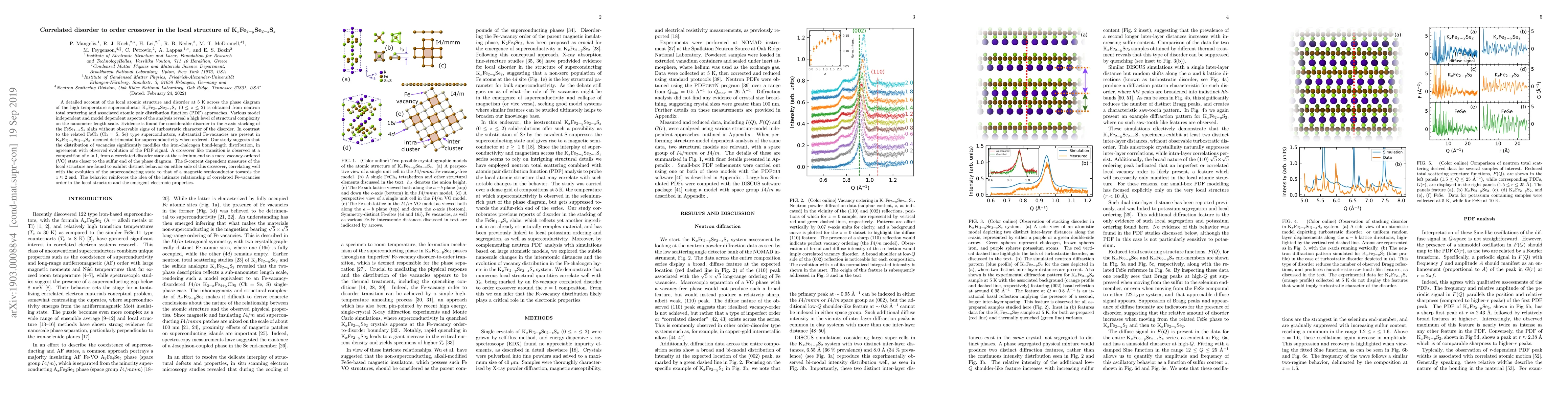 Researchers studied the local atomic structure of a high-temperature superconductor and found a complex crossover in its disorder at 5K, which affects its electronic properties. The study reveals an intimate relationship between correlated Fe-vacancies and the material's emergent electronic behavior.