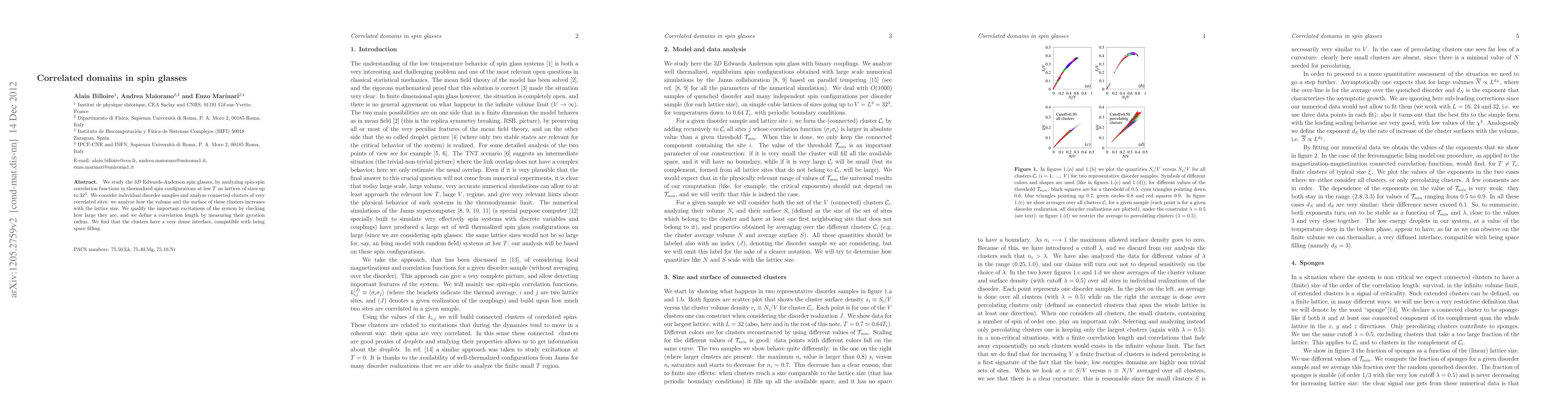 Researchers studied 3D spin glasses at low temperatures on large lattices, finding clusters of highly correlated sites with dense interfaces that fill space. These findings provide insights into the system's behavior and excitations.