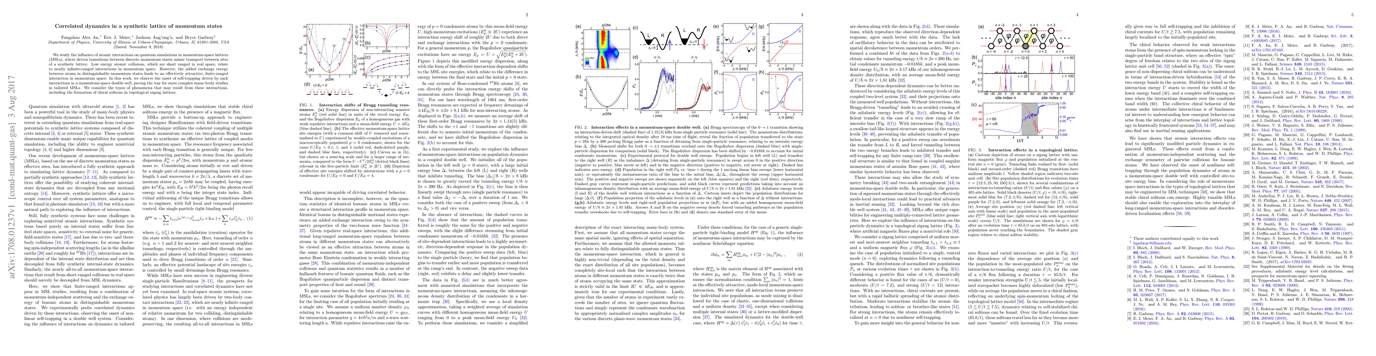 We study the influence of atomic interactions on quantum simulations in momentum-space lattices (MSLs), where driven transitions between discrete momentum states mimic transport between sites of a synthetic lattice. Low energy atomic collisions, which are short ranged in real space, relate to nearly infinite-ranged interactions in momentum space. However, the added exchange energy between atoms in distinguishable momentum states leads to an effectively attractive, finite-ranged interaction in momentum space. In this work, we observe the onset of self-trapping driven by such interactions in a momentum-space double well, paving the way for more complex many-body studies in tailored MSLs. We consider the types of phenomena that may result from these interactions, including the formation of chiral solitons in topological zigzag lattices.
