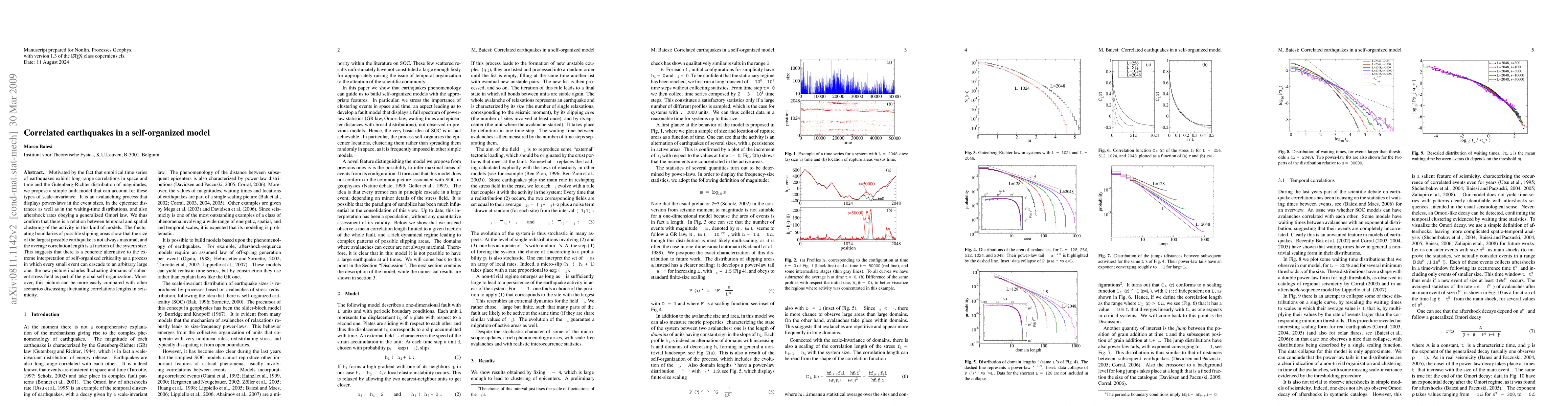 Motivated by the fact that empirical time series of earthquakes exhibit long-range correlations in space and time and the Gutenberg-Richter distribution of magnitudes, we propose a simple fault model that can account for these types of scale-invariance. It is an avalanching process that displays power-laws in the event sizes, in the epicenter distances as well as in the waiting-time distributions, and also aftershock rates obeying a generalized Omori law. We thus confirm that there is a relation between temporal and spatial clustering of the activity in this kind of models. The fluctuating boundaries of possible slipping areas show that the size of the largest possible earthquake is not always maximal, and the average correlation length is a fraction of the system size. This suggests that there is a concrete alternative to the extreme interpretation of self-organized criticality as a process in which every small event can cascade to an arbitrary large one: the new picture includes fluctuating domains of coherent stress field as part of the global self-organization. Moreover, this picture can be more easily compared with other scenarios discussing fluctuating correlations lengths in seismicity.