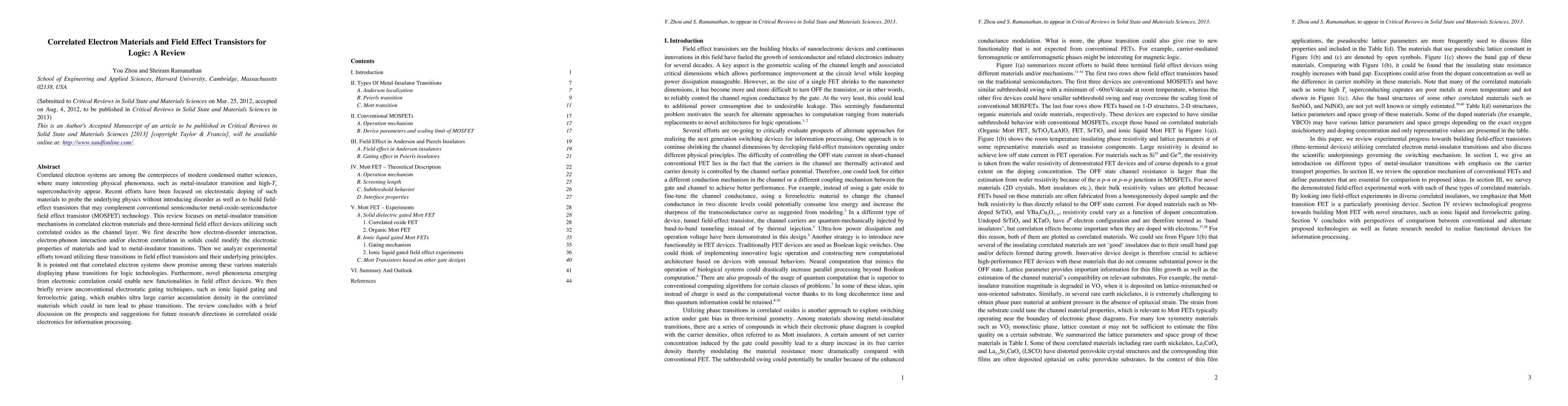 This review explores the potential of correlated electron materials in field-effect transistors for logic technologies, focusing on metal-insulator transitions and the underlying physical phenomena like electron-disorder and electron-phonon interactions. It highlights the promise of these materials in developing advanced transistor technologies and discusses unconventional gating techniques to enhance their functionality.