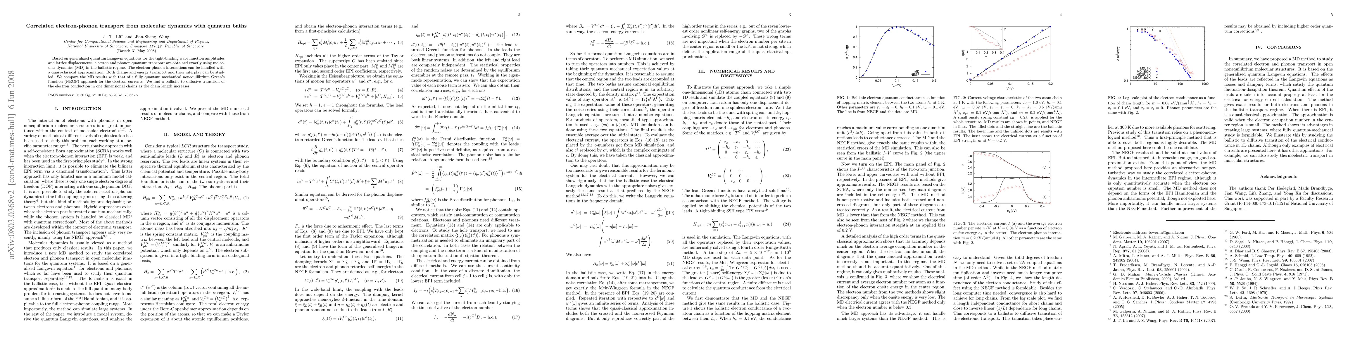 This paper investigates electron-phonon transport in one-dimensional chains using molecular dynamics with quantum baths, revealing a transition from ballistic to diffusive conduction as chain length increases. The study compares molecular dynamics results with a fully quantum mechanical nonequilibrium Green's function approach.