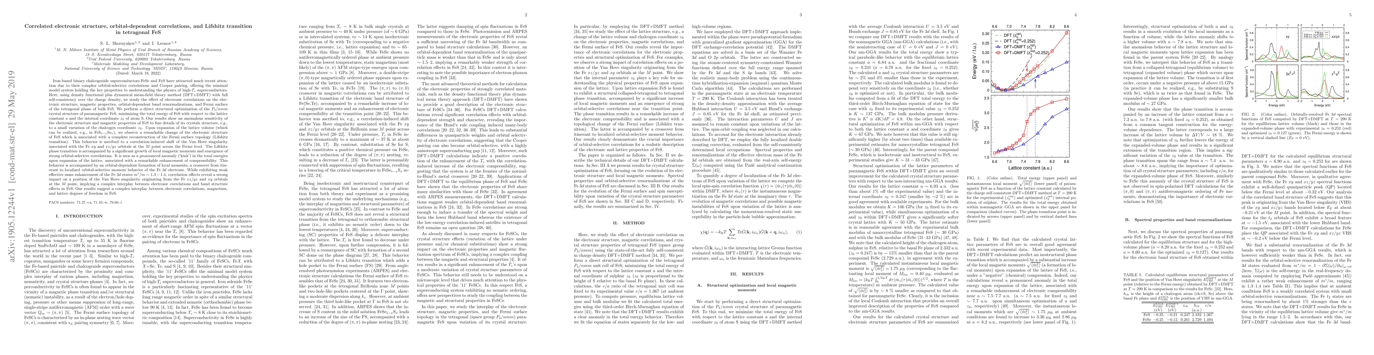 This study employs DFT+DMFT to investigate the electronic structure of tetragonal FeS, revealing that electronic correlations significantly affect the magnetic properties and Fermi surface topology. A Lifshitz transition occurs with lattice expansion, marked by a shift in the Van Hove singularity and a reconstruction of the Fermi surface, accompanied by a strong enhancement of local magnetic moments and orbital-selective correlations.
