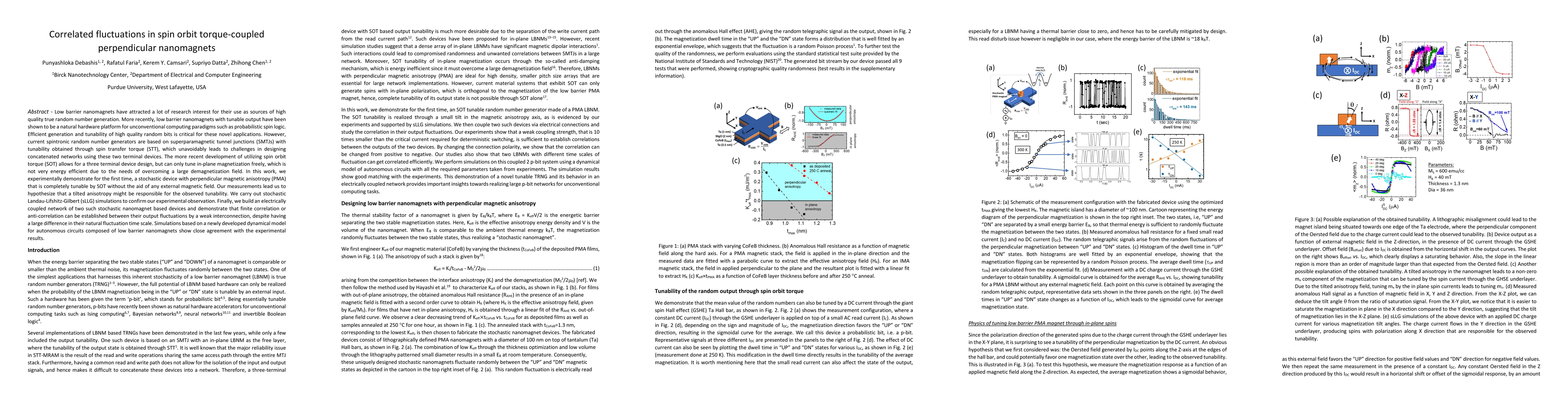 This paper demonstrates a tunable stochastic device using spin orbit torque in perpendicular nanomagnets, achieving complete tunability without external magnetic fields. It also shows correlated fluctuations in an electrically coupled network of such devices, suggesting potential for unconventional computing paradigms.