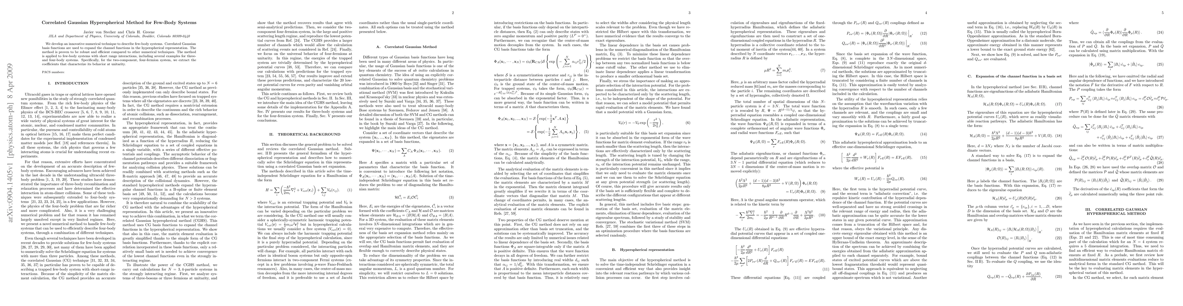 This paper introduces a new Correlated Gaussian Hyperspherical Method for accurately describing few-body systems, demonstrating its efficiency and robustness through applications to three- and four-body systems with short-range interactions, including a detailed analysis of a four-fermion system at unitarity.