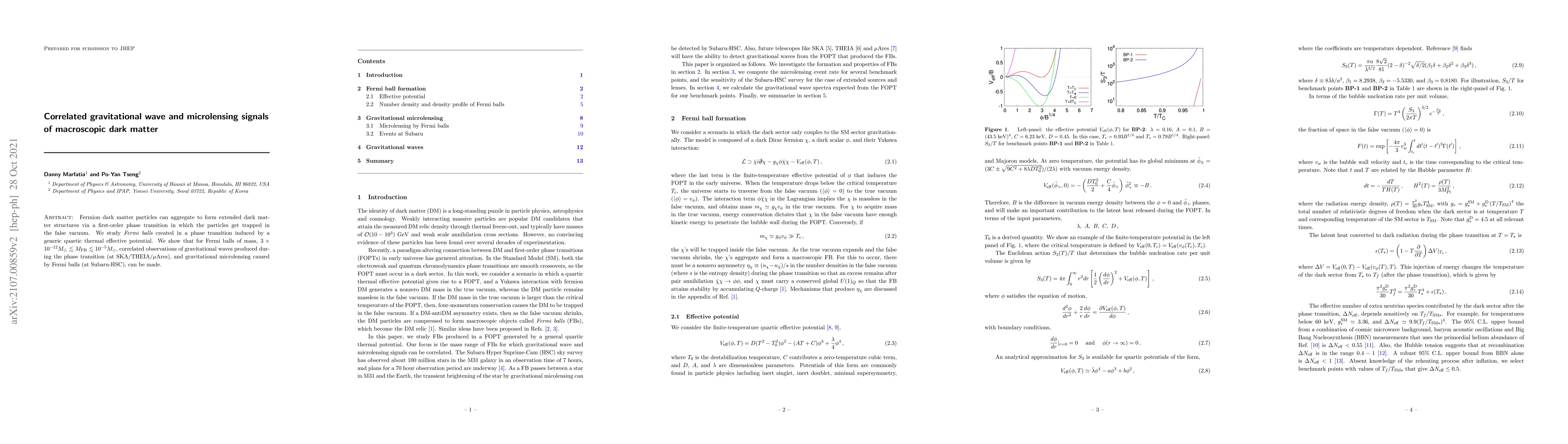 This paper explores the formation of extended dark matter structures, termed Fermi balls, through a first-order phase transition. It predicts that gravitational waves and microlensing signals from these Fermi balls, with masses ranging from $3\times 10^{-12}M_\odot$ to $10^{-5}M_\odot$, can be detected by SKA/THEIA/$\mu$Ares and Subaru-HSC, respectively.