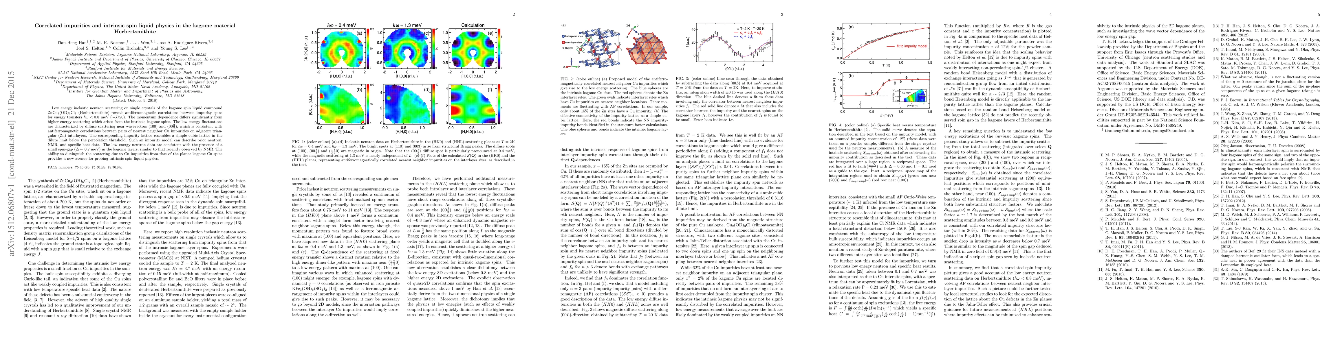 This study uses low energy neutron scattering to reveal antiferromagnetic correlations between impurity spins in Herbertsmithite, a kagome spin liquid material, distinguishing them from intrinsic kagome spin interactions. The findings suggest a small spin-gap in the kagome layers and provide a new method for exploring intrinsic spin liquid physics.