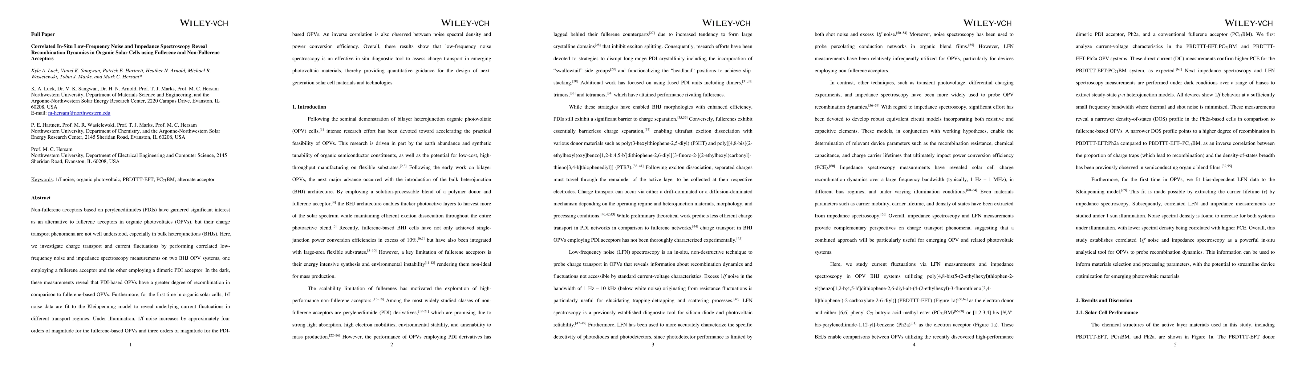 This study establishes LFN and impedance spectroscopy as powerful analytical tools for understanding OPV function beyond standard current-voltage characterization, offering physical insights and guiding the optimization of next-generation solar cell materials.