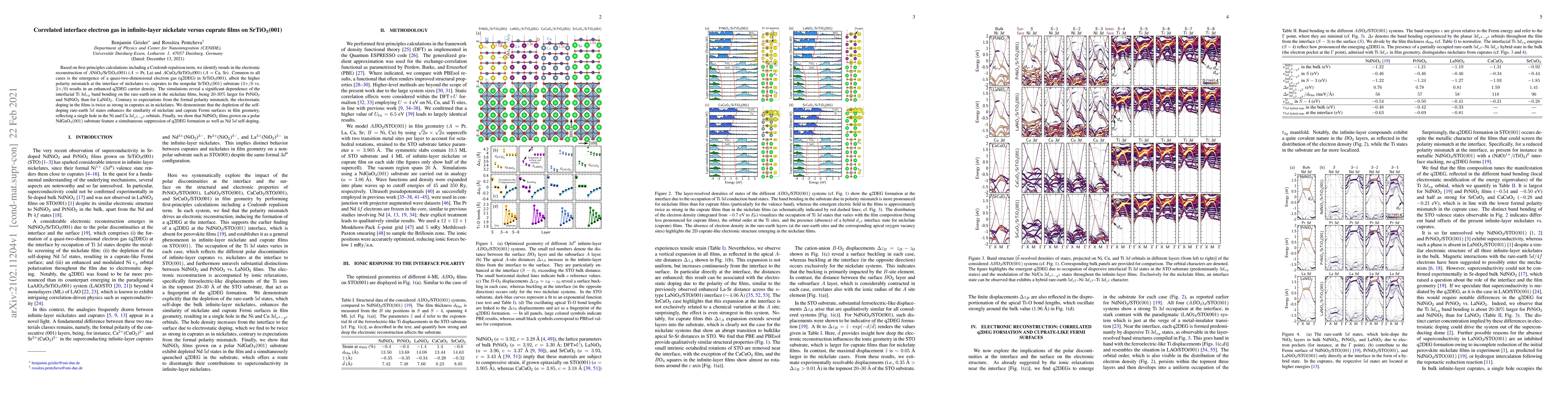 Based on first-principles calculations including a Coulomb repulsion term, we identify trends in the electronic reconstruction of $A$NiO$_2$/SrTiO$_3$(001) ($A=$ Pr, La) and $A$CuO$_2$/SrTiO$_3$(001) ($A=$ Ca, Sr). Common to all cases is the emergence of a quasi-two-dimensional electron gas (q2DEG) in SrTiO$_3$(001), albeit the higher polarity mismatch at the interface of nickelates vs. cuprates to the nonpolar SrTiO$_3(001)$ substrate (${3+}/0$ vs. ${2+}/0$) results in an enhanced q2DEG carrier density. The simulations reveal a significant dependence of the interfacial Ti $3d_{xy}$ band bending on the rare-earth ion in the nickelate films, being $20$-$30\%$ larger for PrNiO$_2$ and NdNiO$_2$ than for LaNiO$_2$. Contrary to expectations from the formal polarity mismatch, the electrostatic doping in the films is twice as strong in cuprates as in nickelates. We demonstrate that the depletion of the self-doping rare-earth $5d$ states enhances the similarity of nickelate and cuprate Fermi surfaces in film geometry, reflecting a single hole in the Ni and Cu $3d_{x^2-y^2}$ orbitals. Finally, we show that NdNiO$_2$ films grown on a polar NdGaO$_3(001)$ substrate feature a simultaneous suppression of q2DEG formation as well as Nd~$5d$ self-doping.