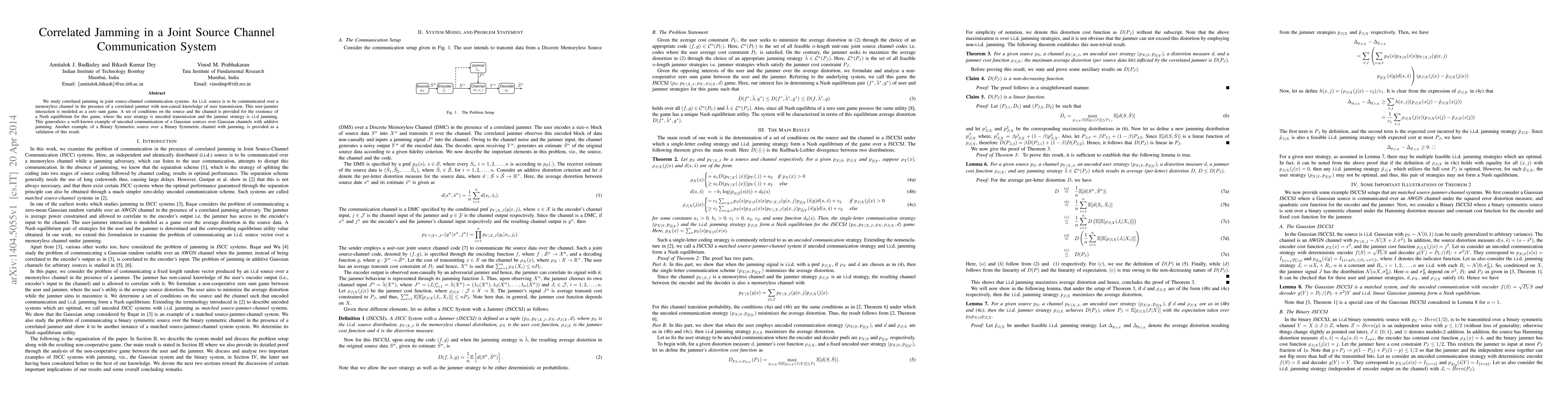 This paper studies correlated jamming in joint source-channel communication systems, finding conditions for a Nash equilibrium under non-causal jammer knowledge, generalizing a Gaussian source over Gaussian channel example.
